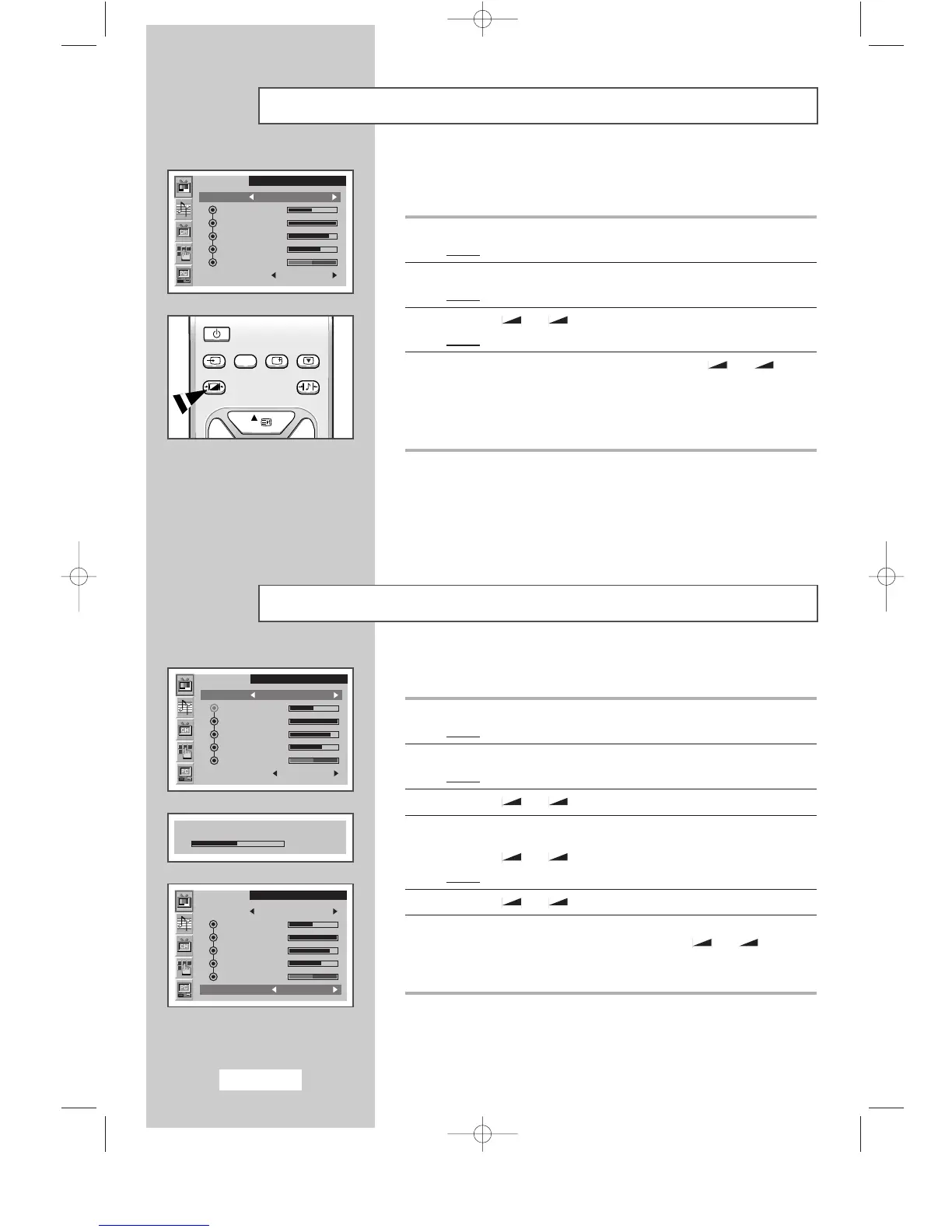 Contrast, Sharpness, Colour or Tint (NTSC only) settings,