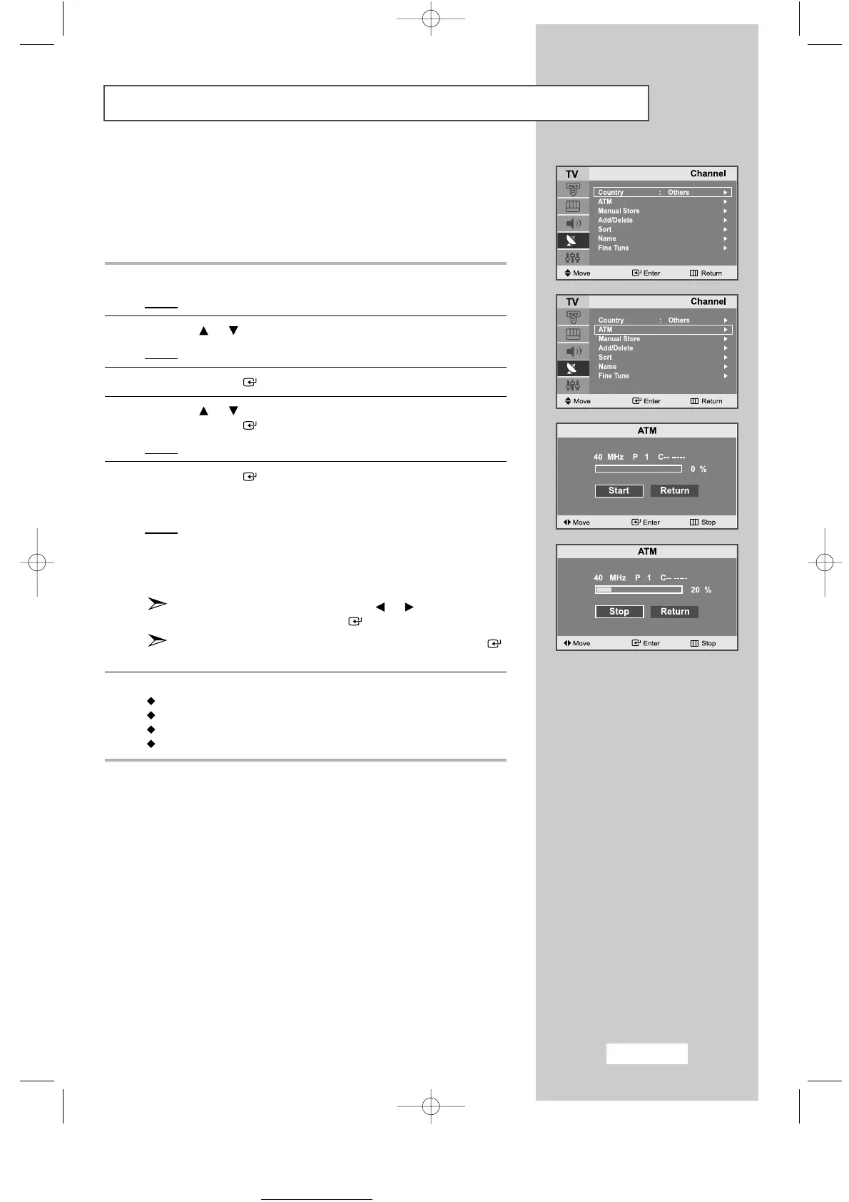 Add or delete the channels (refer to page 22)