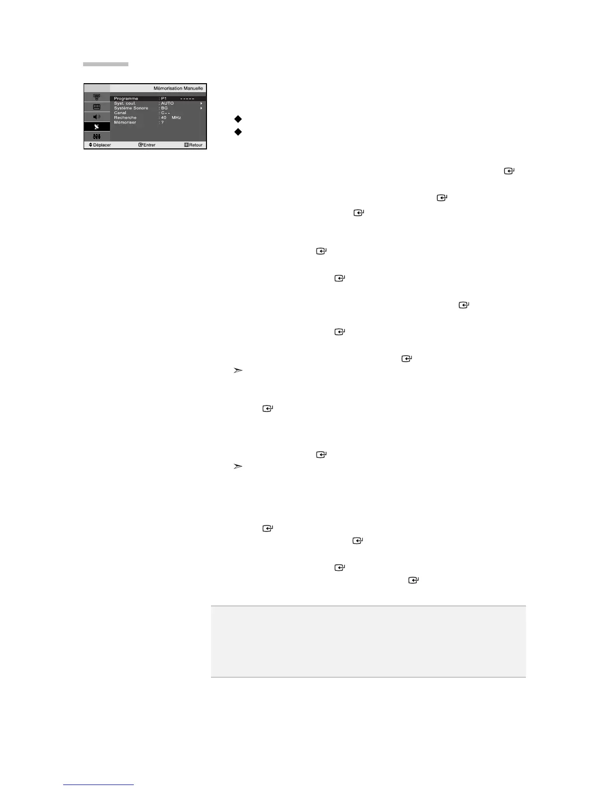 “Mémorisation Manuelle”, puis sur la touche ENTER .
