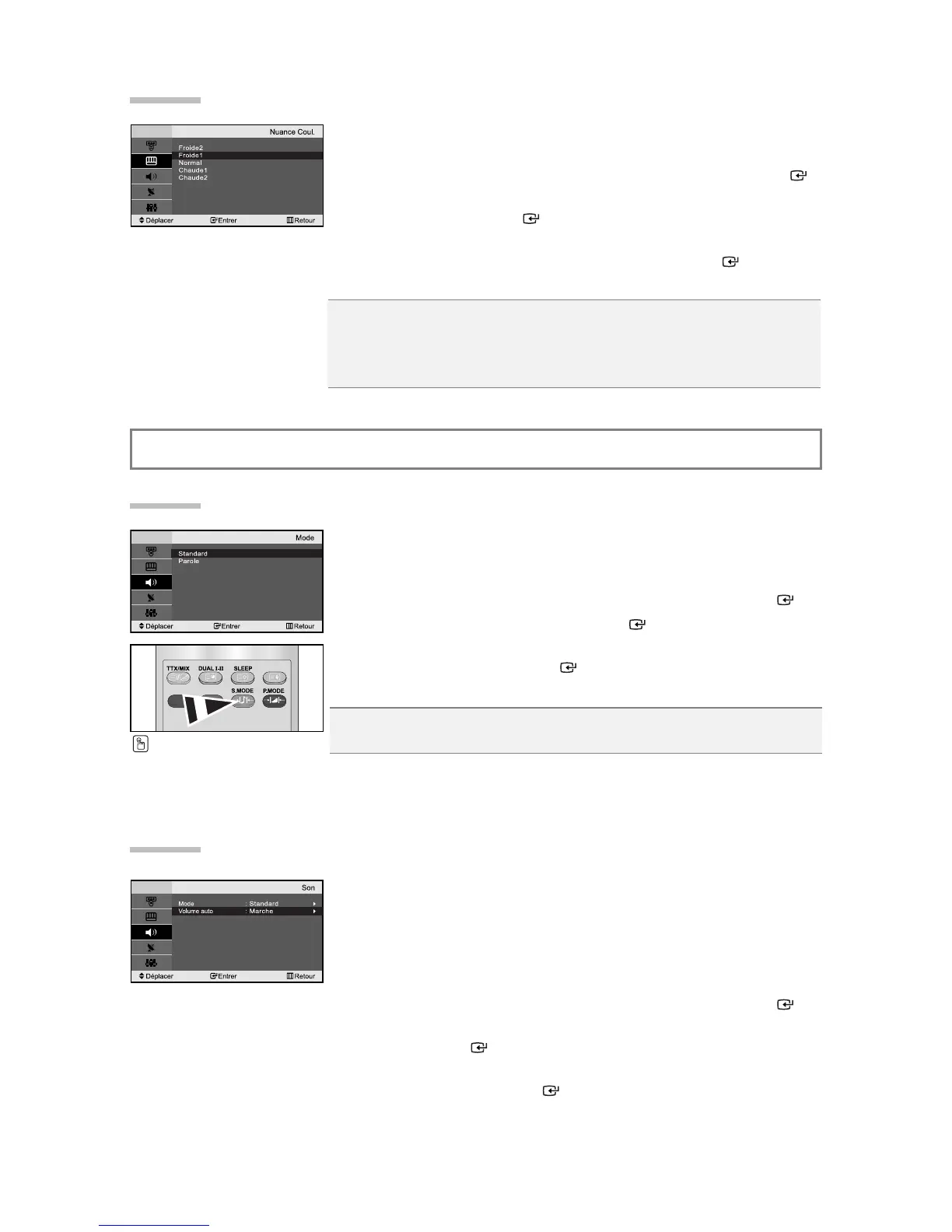 bouton ou pour sélectionner “Son”, puis sur la touche ENTER .