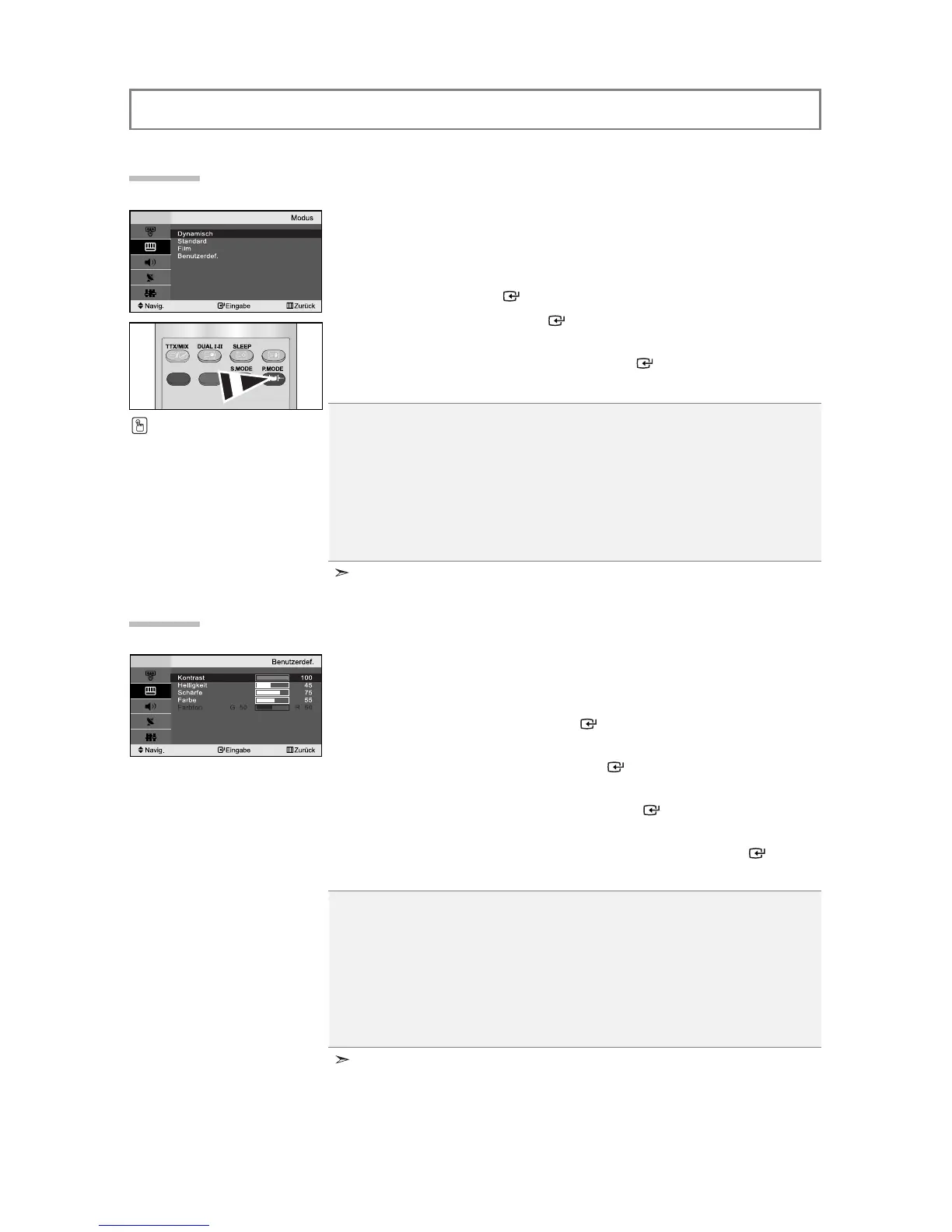 P. MODE auf der Fernbedienung