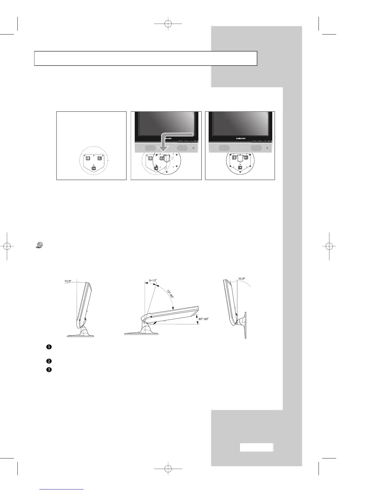 Picture(1) shows the adjustment angle(0°~ 13°)when you use LCD TV in its general form(stand-based LCD TV).