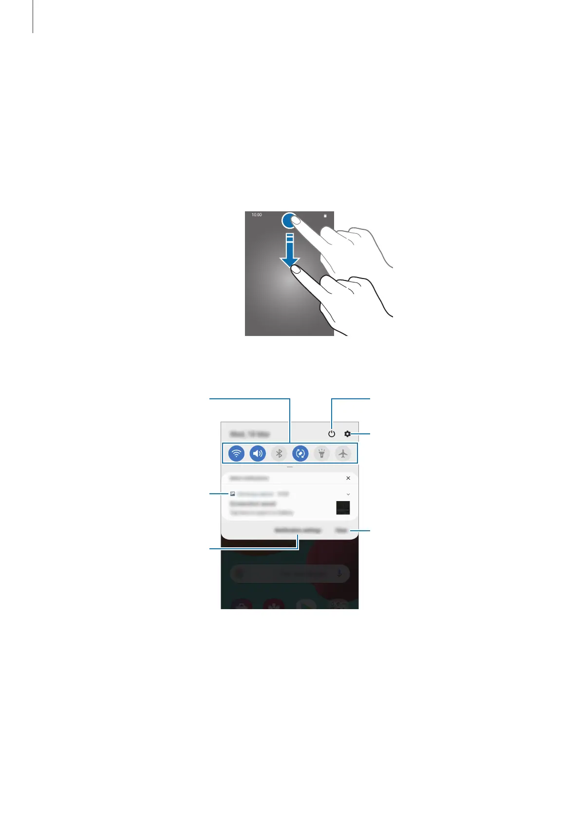 To open the notification panel, drag the status bar downwards. To close the notification panel,