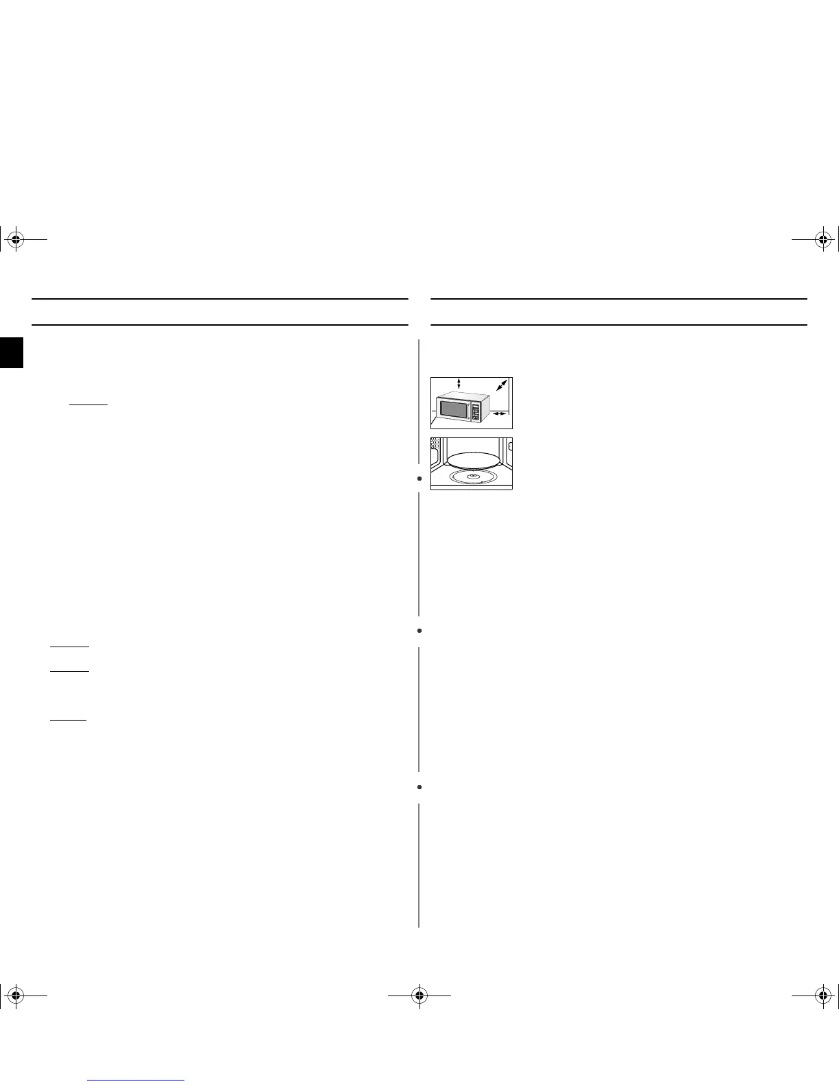 ☛ Do not install the microwave oven in hot or damp surroundings
