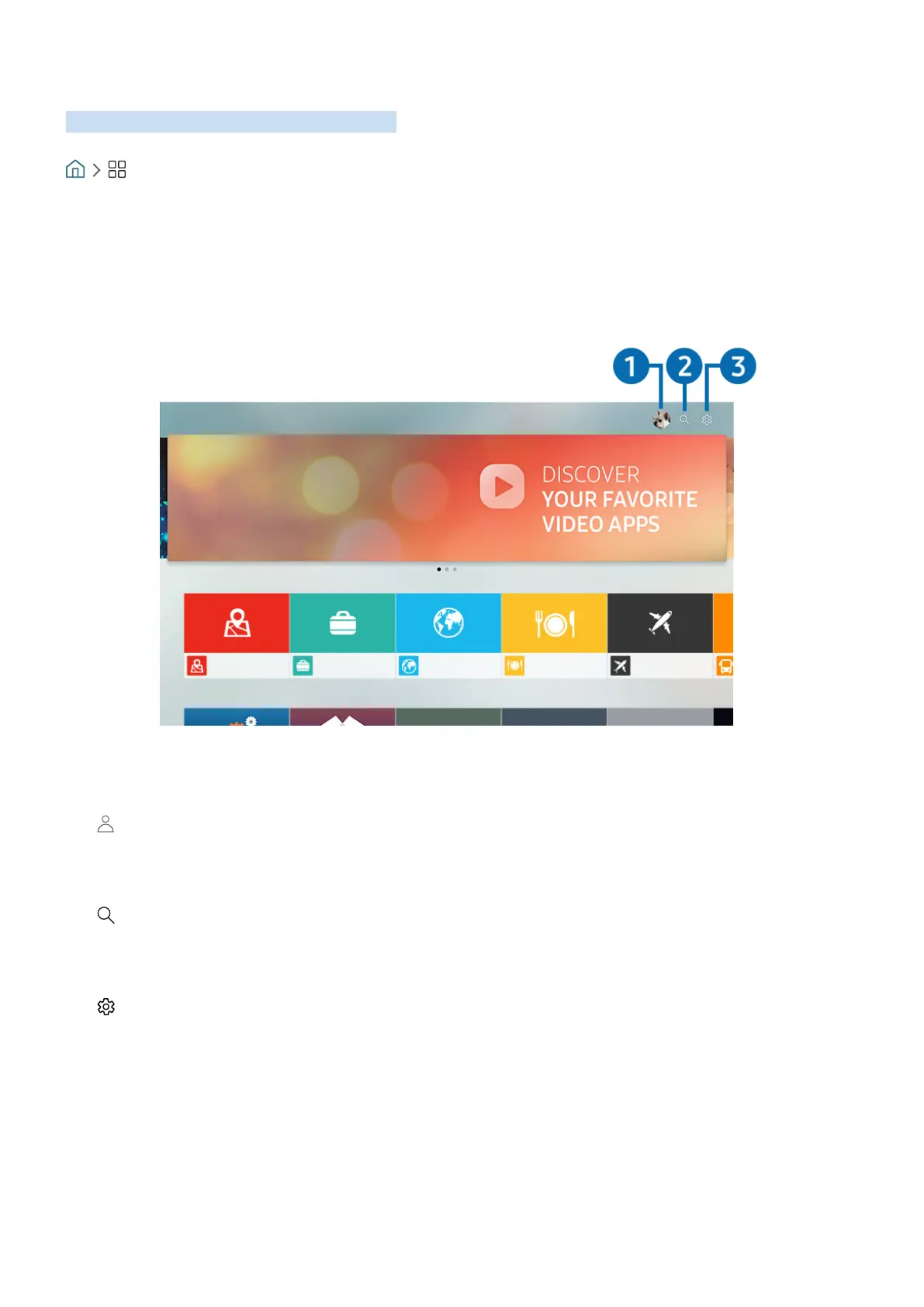 " When Smart Hub is launched for the first time, the default apps are automatically installed. The default apps may differ