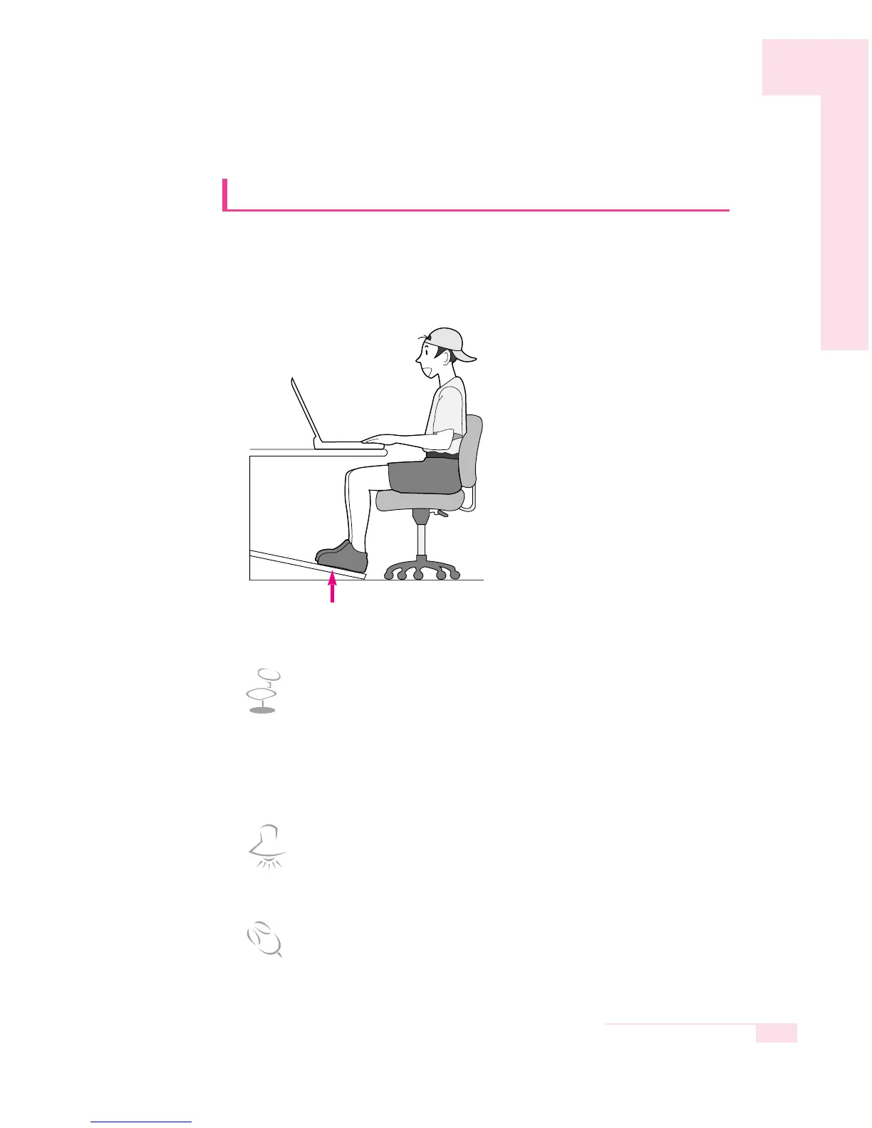 The proper seating posture during computer use is provided here.