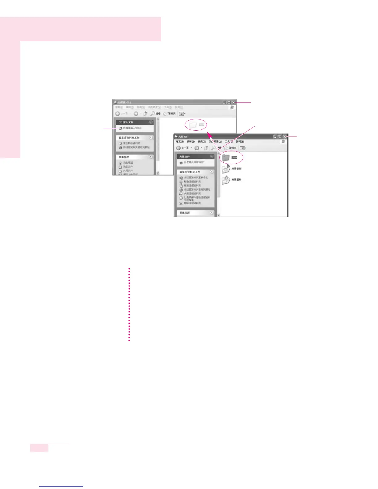 4. Select, drag and drop folders or files to copy onto the CD-ROM drive window.