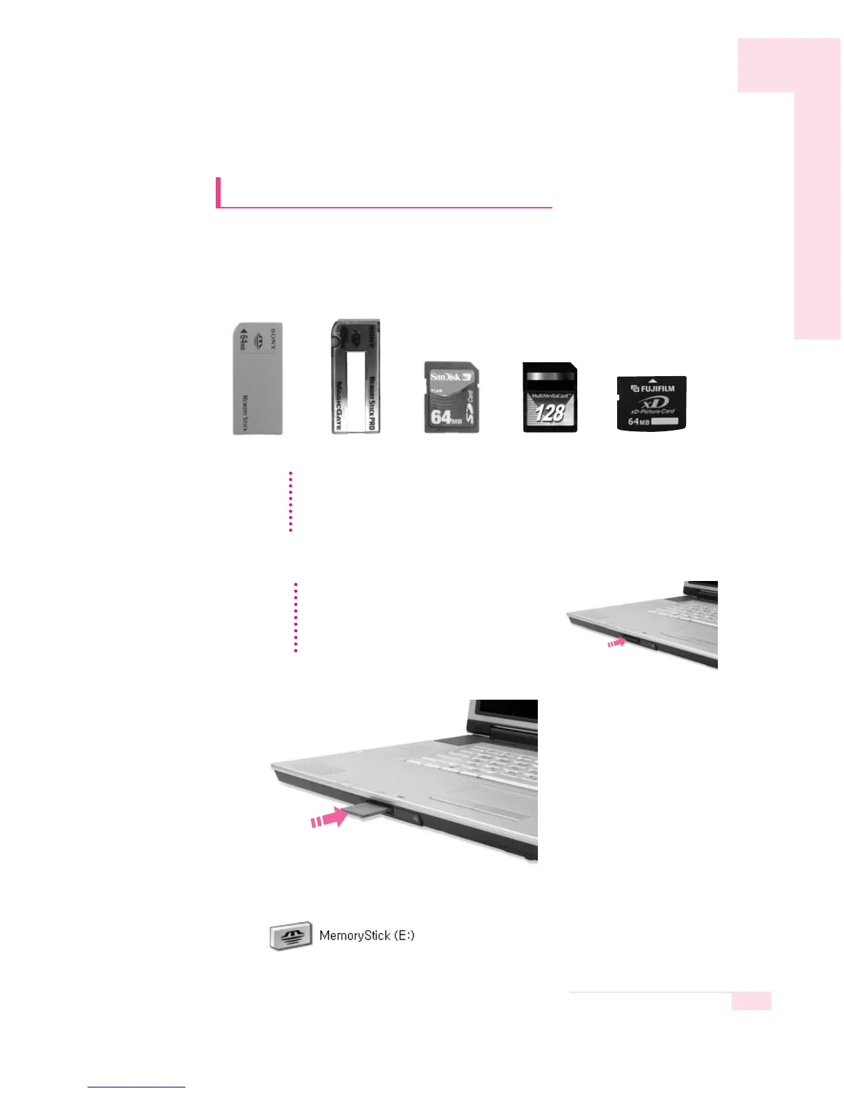 Stick, Memory Stick Pro, SD Card, MMC, or xD Card. A memory card is