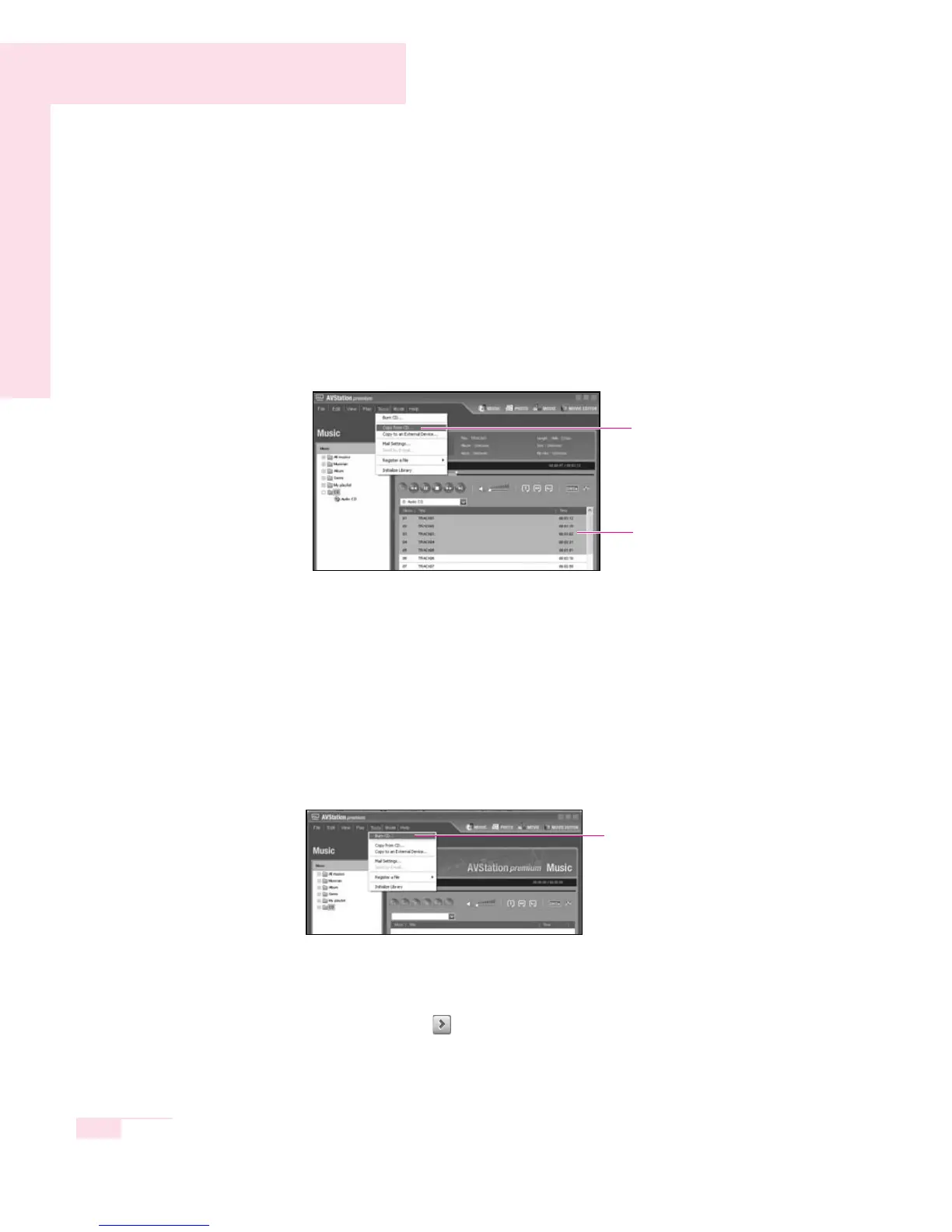 The copied tracks are saved in the My Documents > AVStation premi-