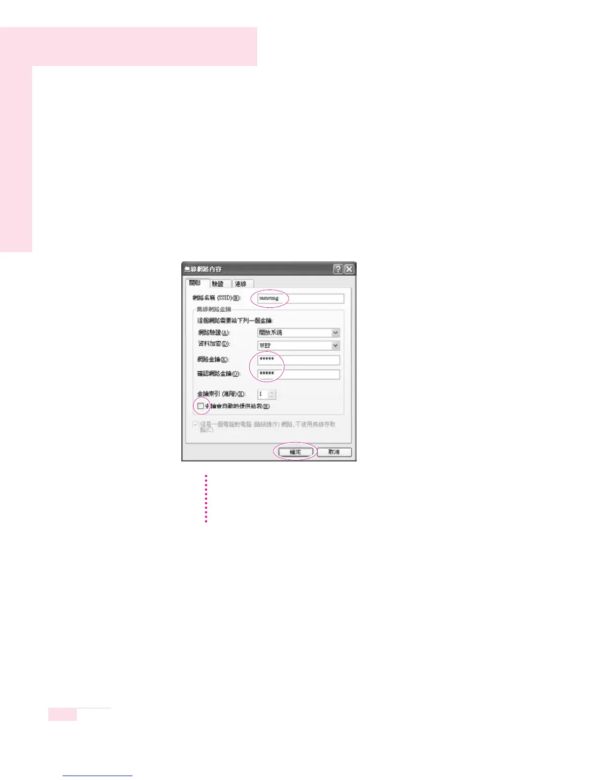 configure a network key (encryption key). A network key consists of 5 ~ 13