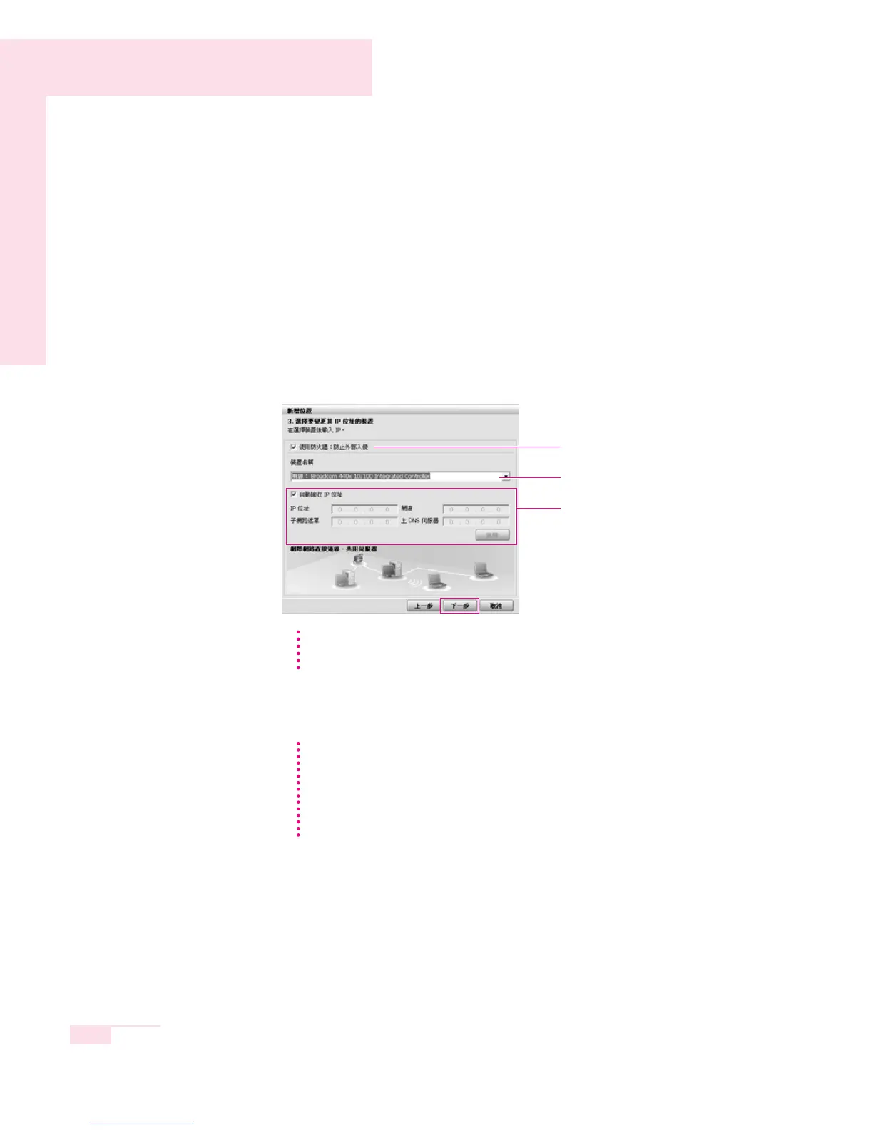 the description of item 6 of Setting Up a Network on page 4-16.