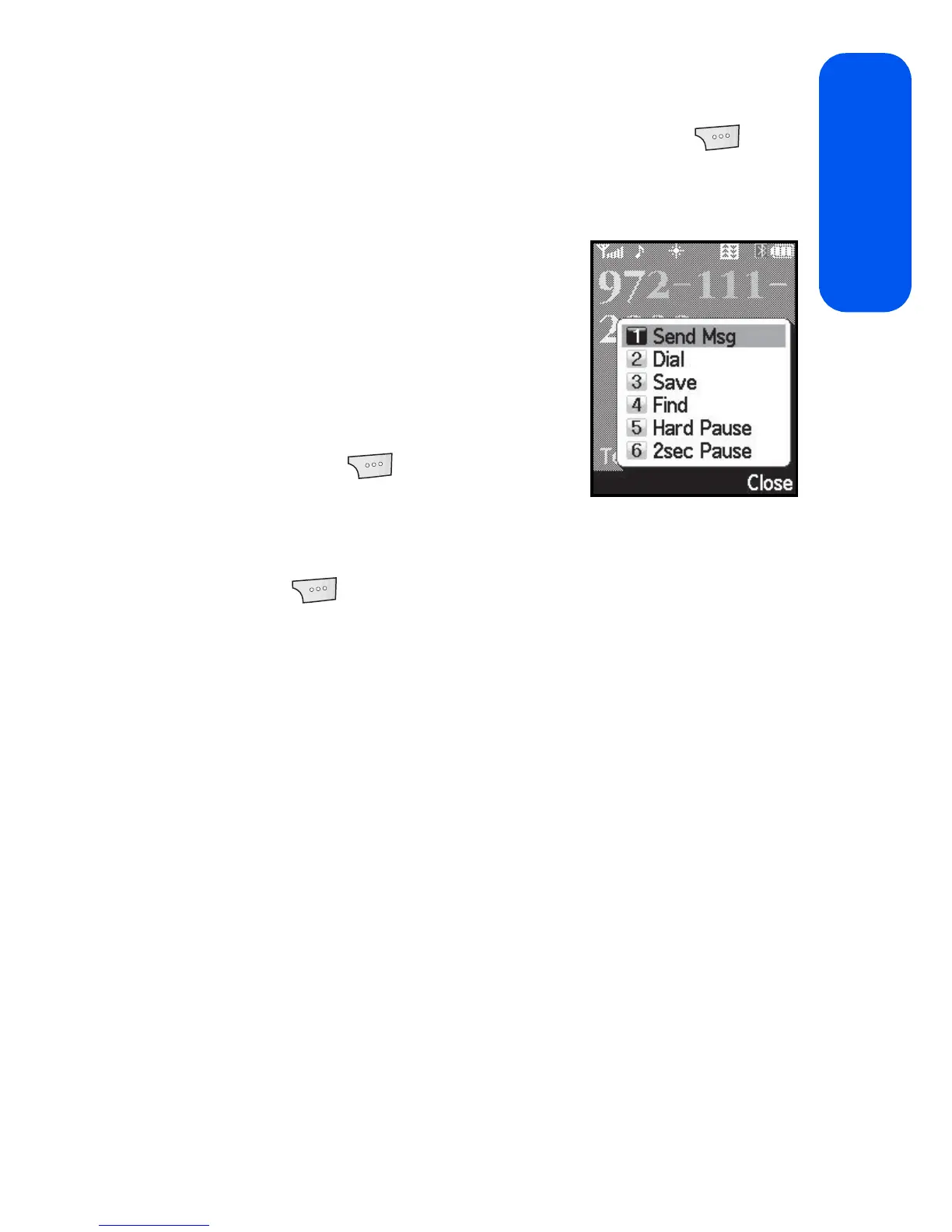 䢇 (6) 2sec Pause allows you to enter a two-second pause. The phone