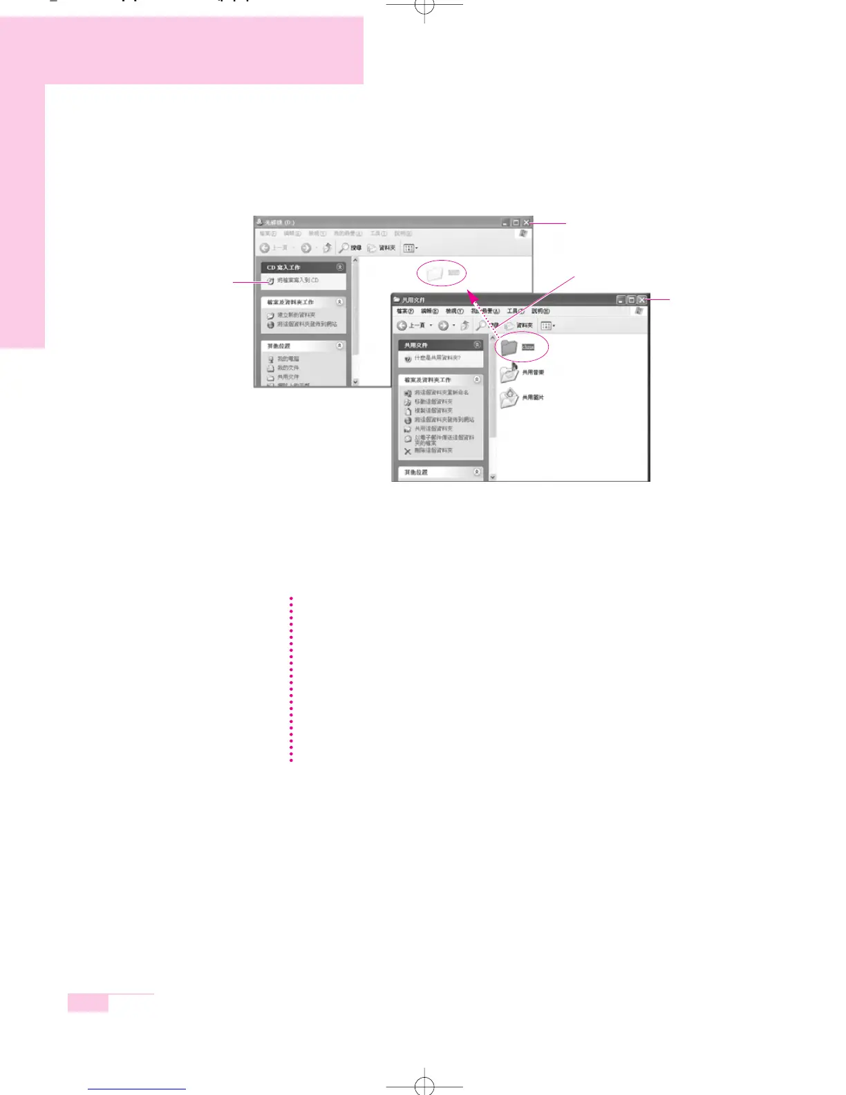 4. Select, drag and drop folders or files to copy onto the CD-ROM drive window.