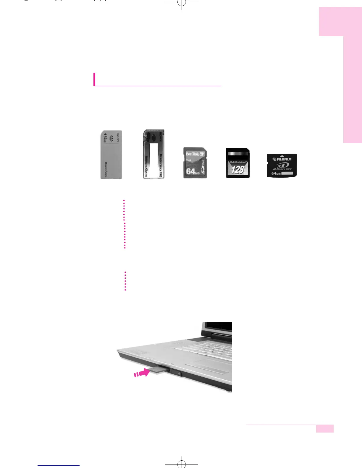 Memory Stick Pro, SD Card, MMC, or xD Card. A memory card is used as a