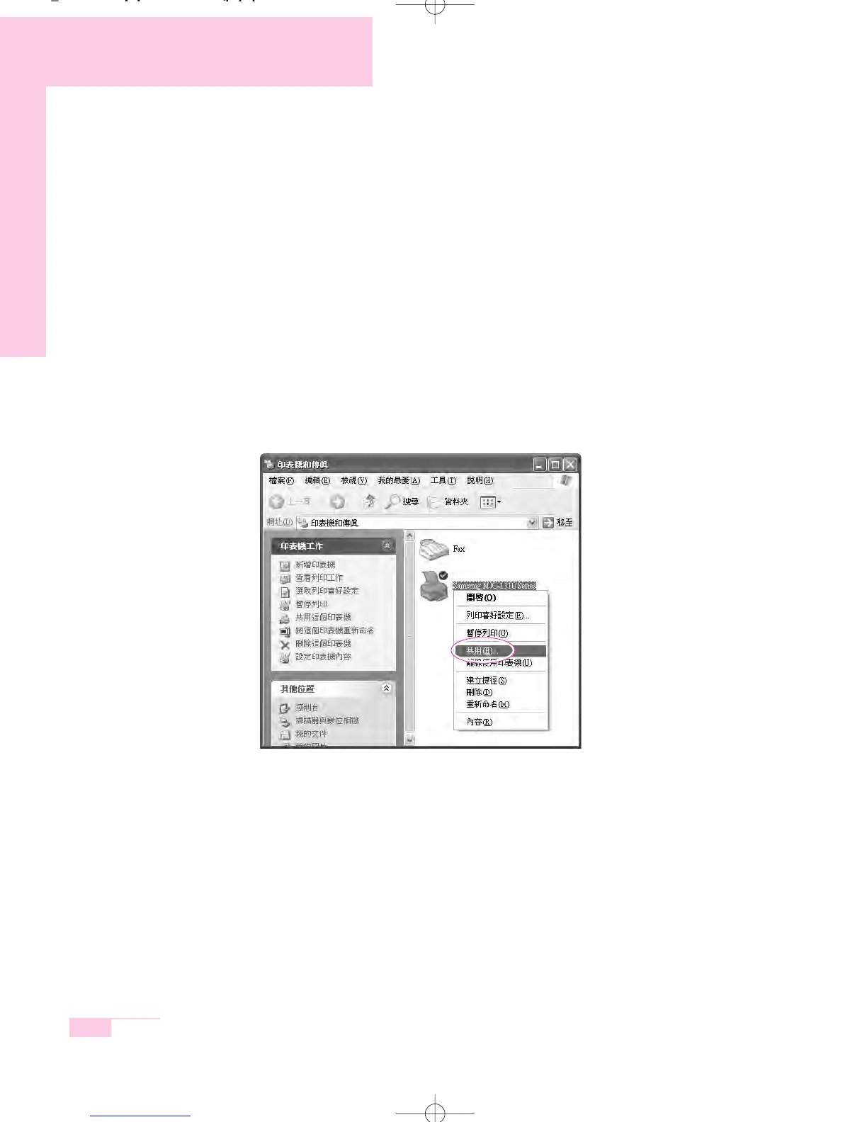 This section describes how to share a printer between computers connected to a net-