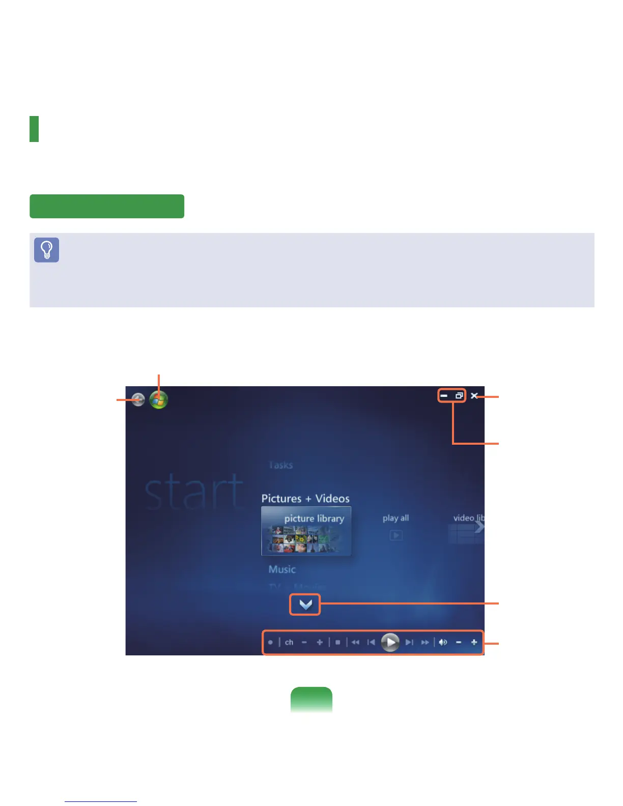ThedescriptionsoftheMediaCenterstartscreenandbasicfunctionswillbegivenbelow.