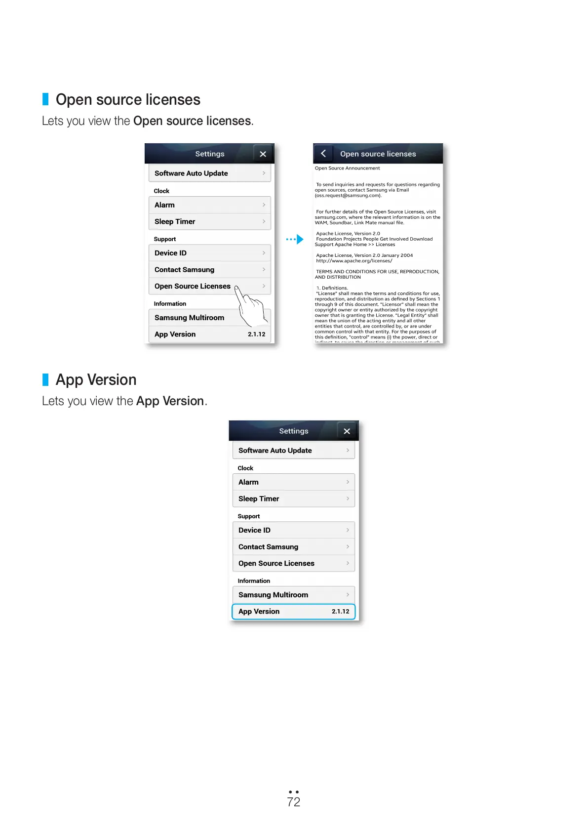 Samsung M7 - Open Source Licenses; App Version