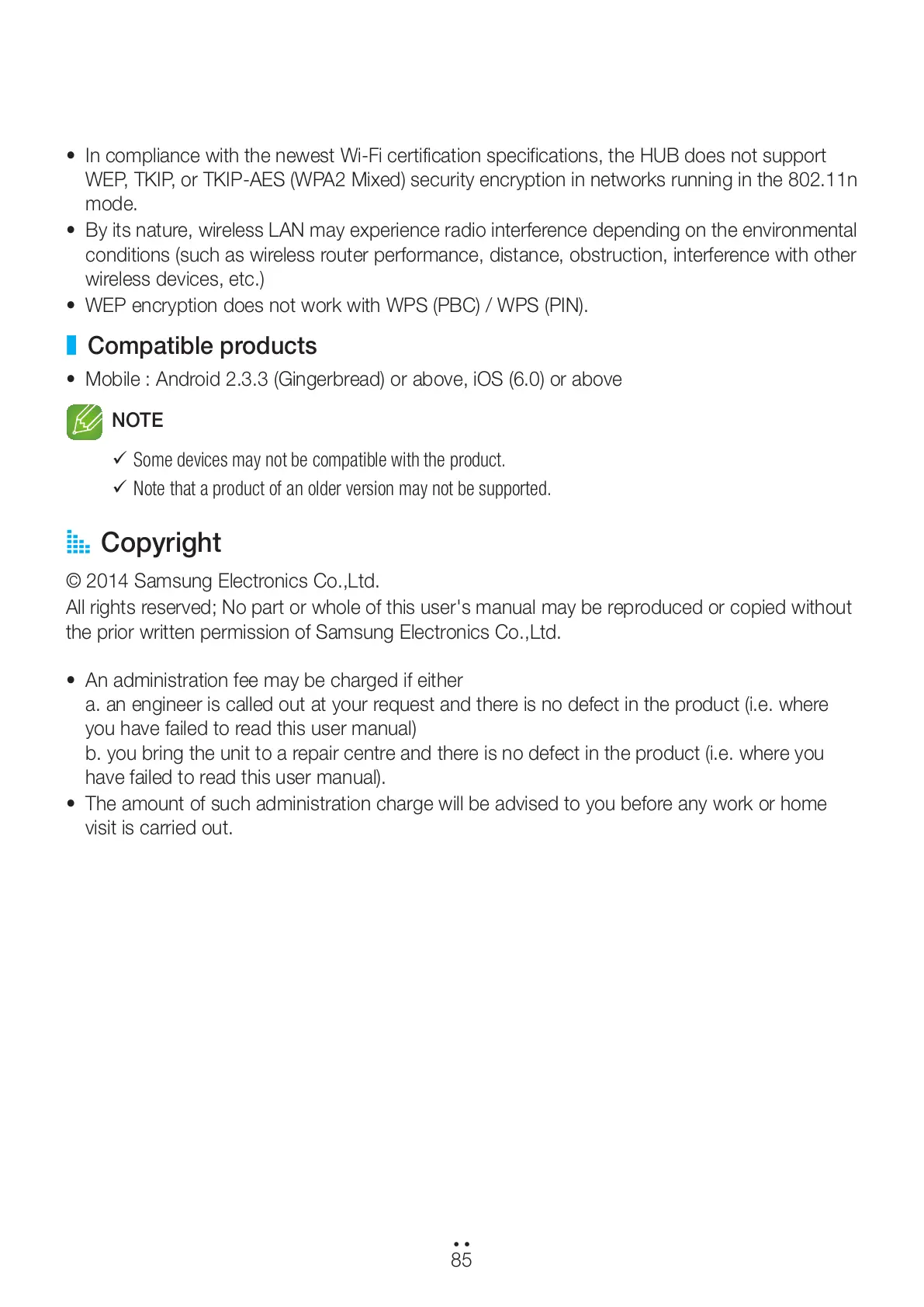 • In compliance with the newest Wi-Fi certification specifications, the HUB does not support