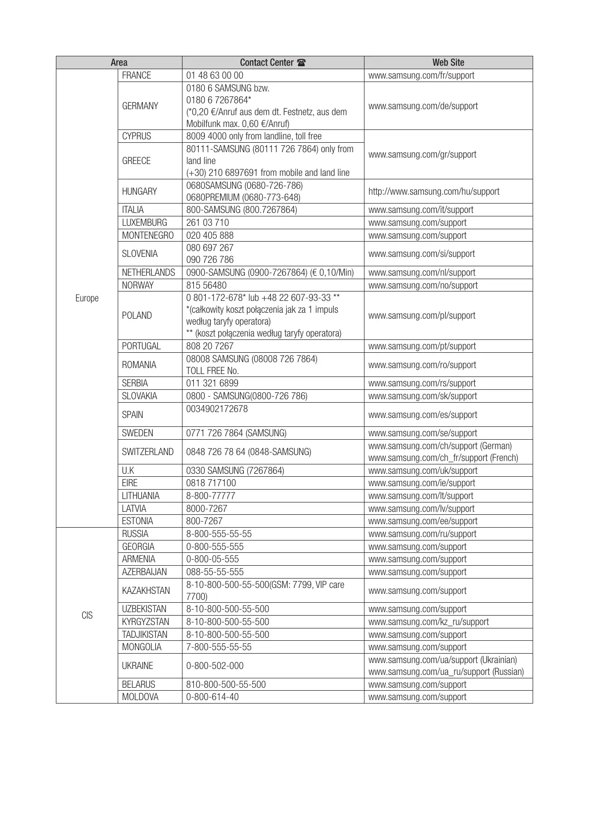 SLOVAKIA 0800 - SAMSUNG(0800-726 786) www.samsung.com/sk/support