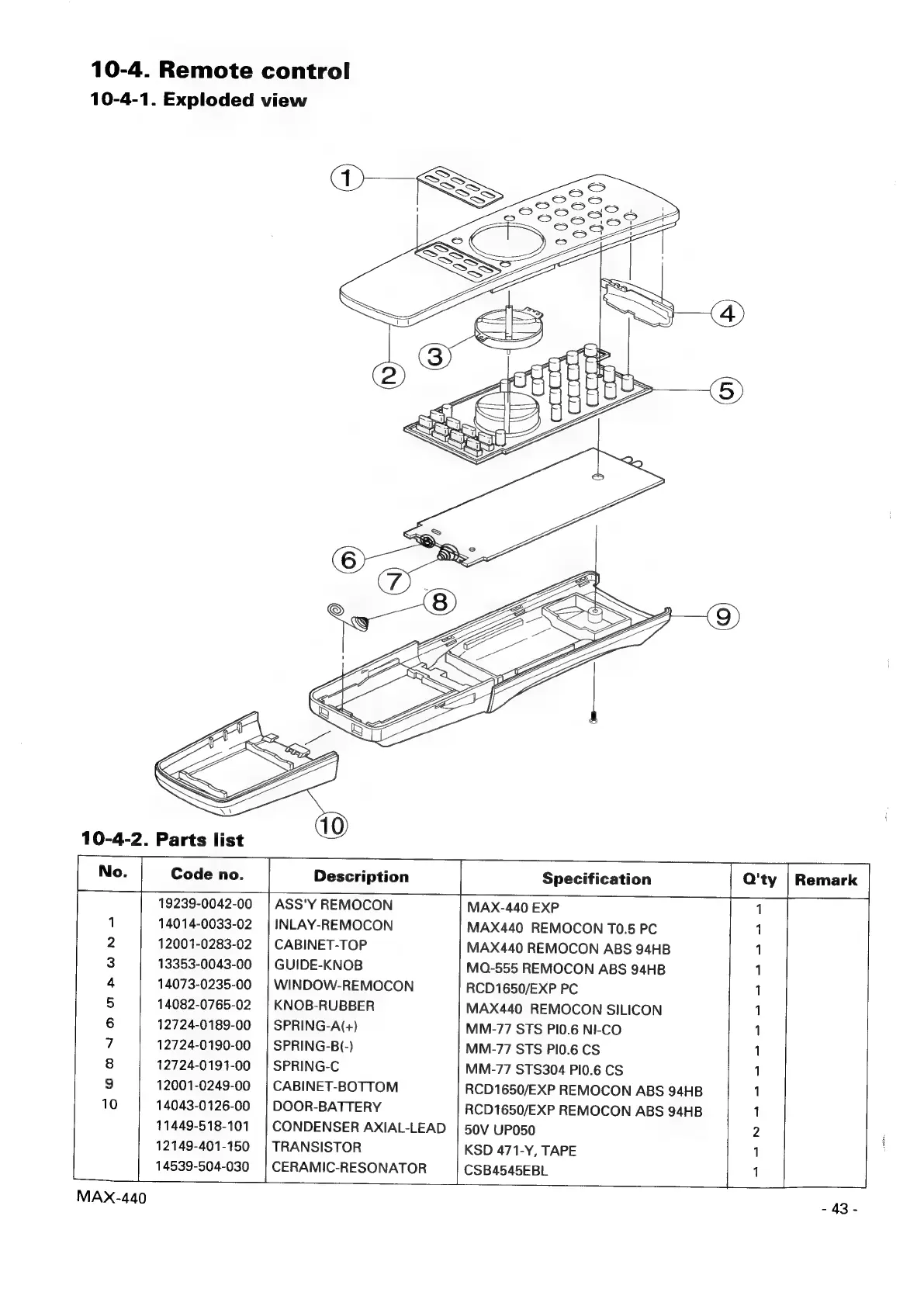 Samsung MAX-440 - Remote Control