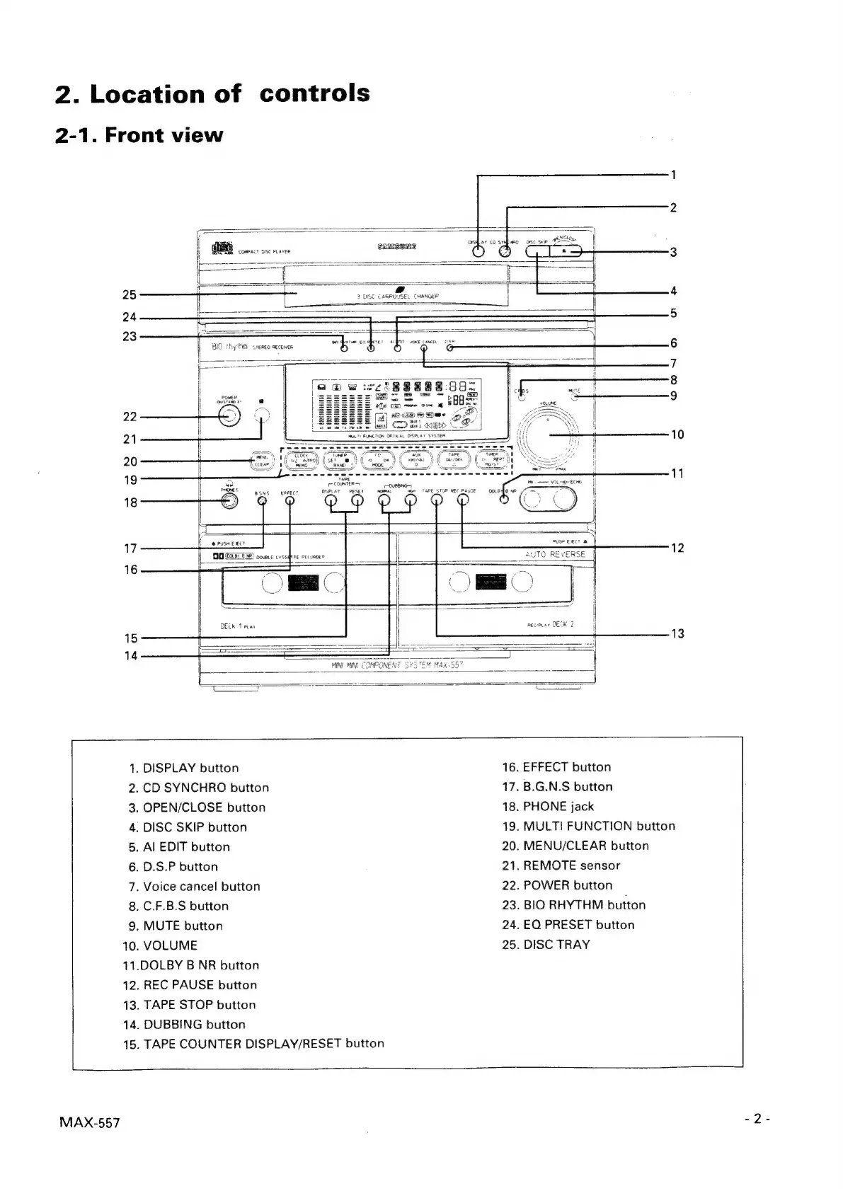 Samsung MAX-557 - Location of Controls; Front View