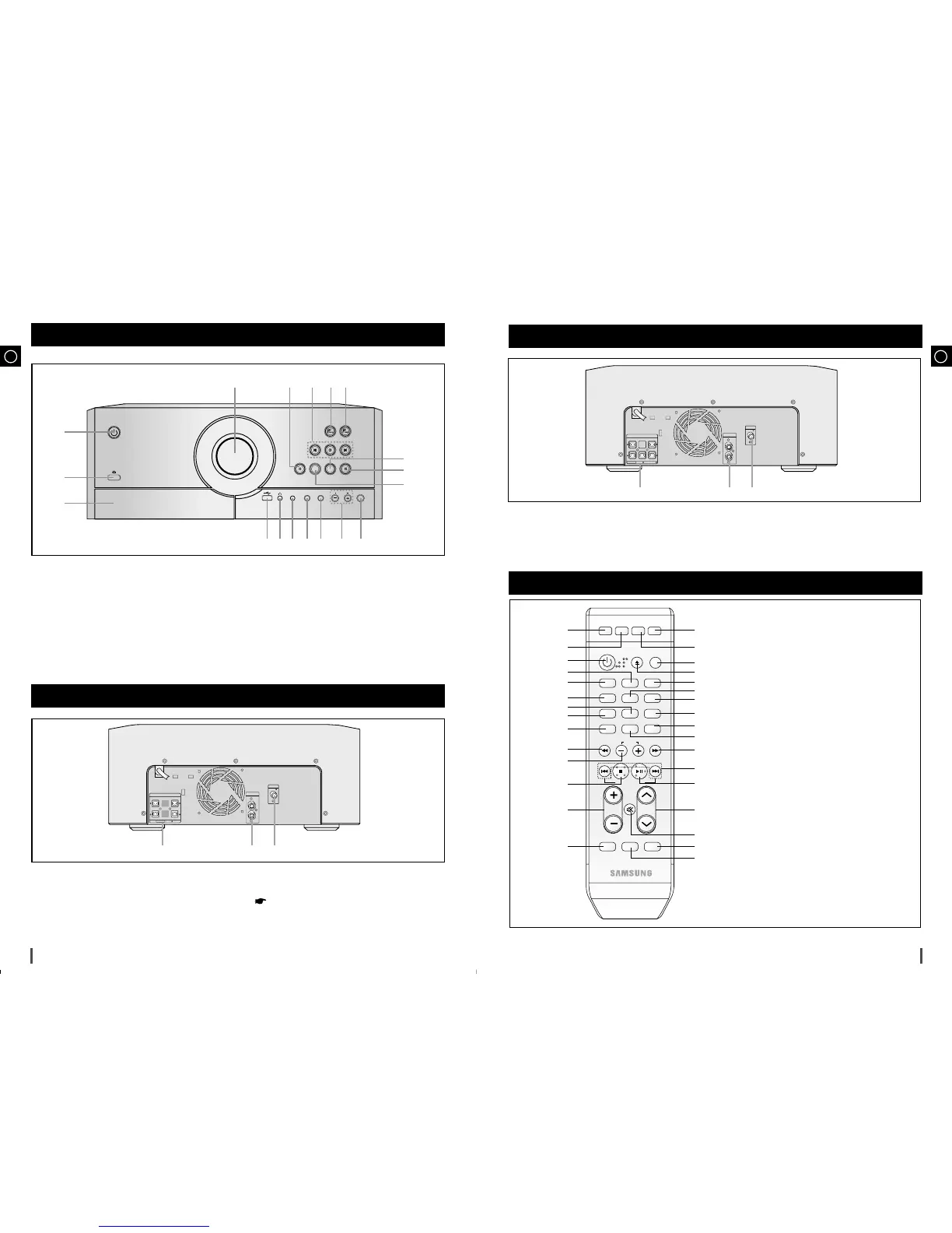 Samsung MAX-A65 - Front Panel View; Rear Panel View (MAX-A65); Rear Panel View (MAX-A66); Remote Control