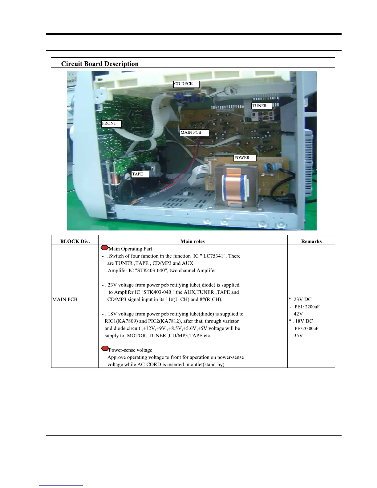 Samsung MAX-C550 - Circuit Board Description; Main PCB Functions