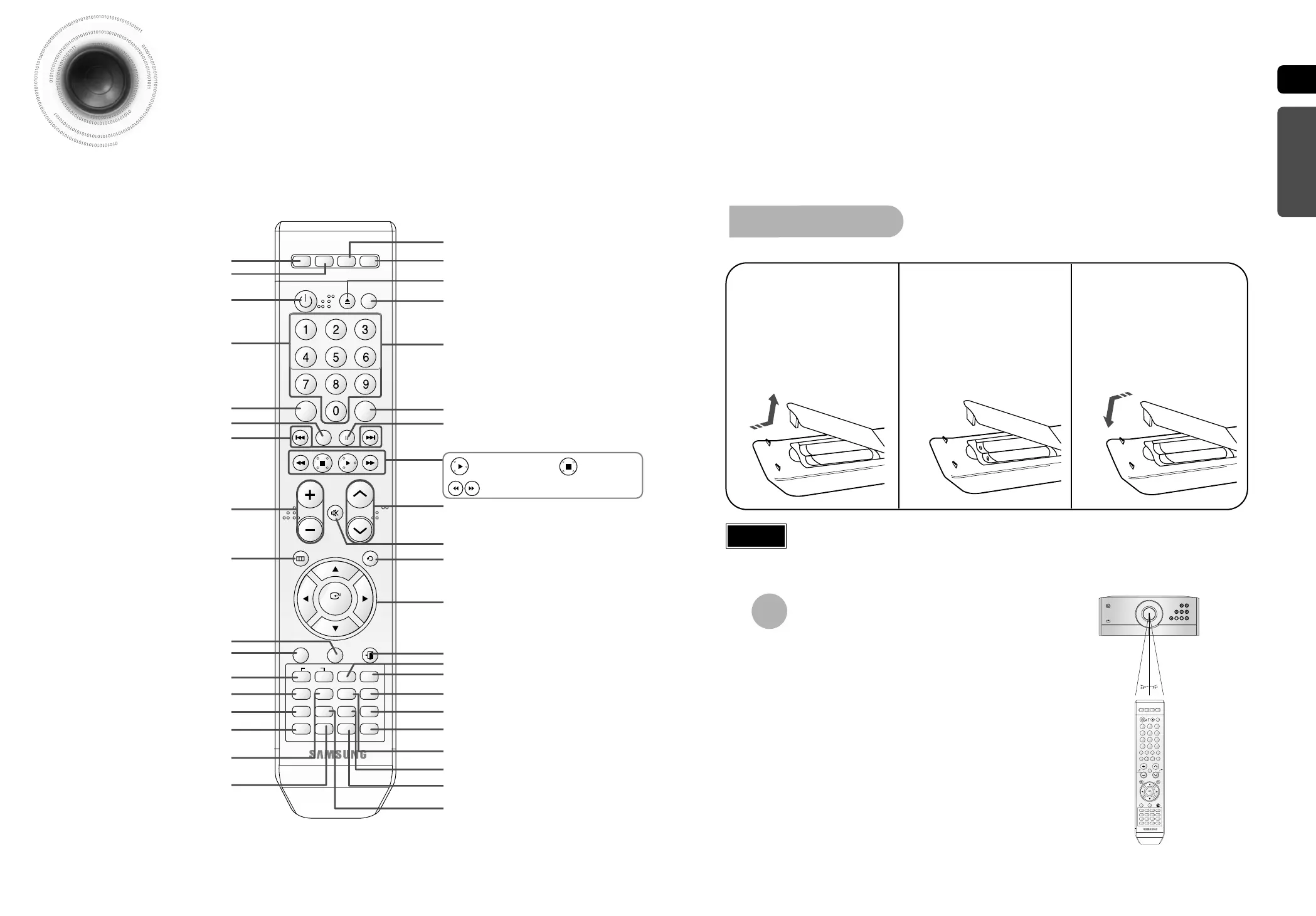 Place batteries in the remote control so they match the polarity:(+) to (+)and (–)to (–).