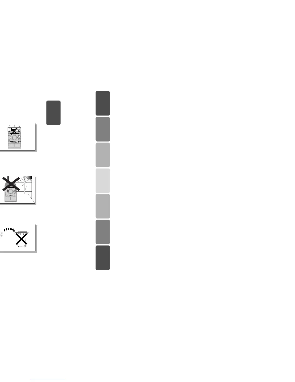 are not covered. Do not stack anything on top of the player. Do not place the player on amplifiers or other equipment which may become