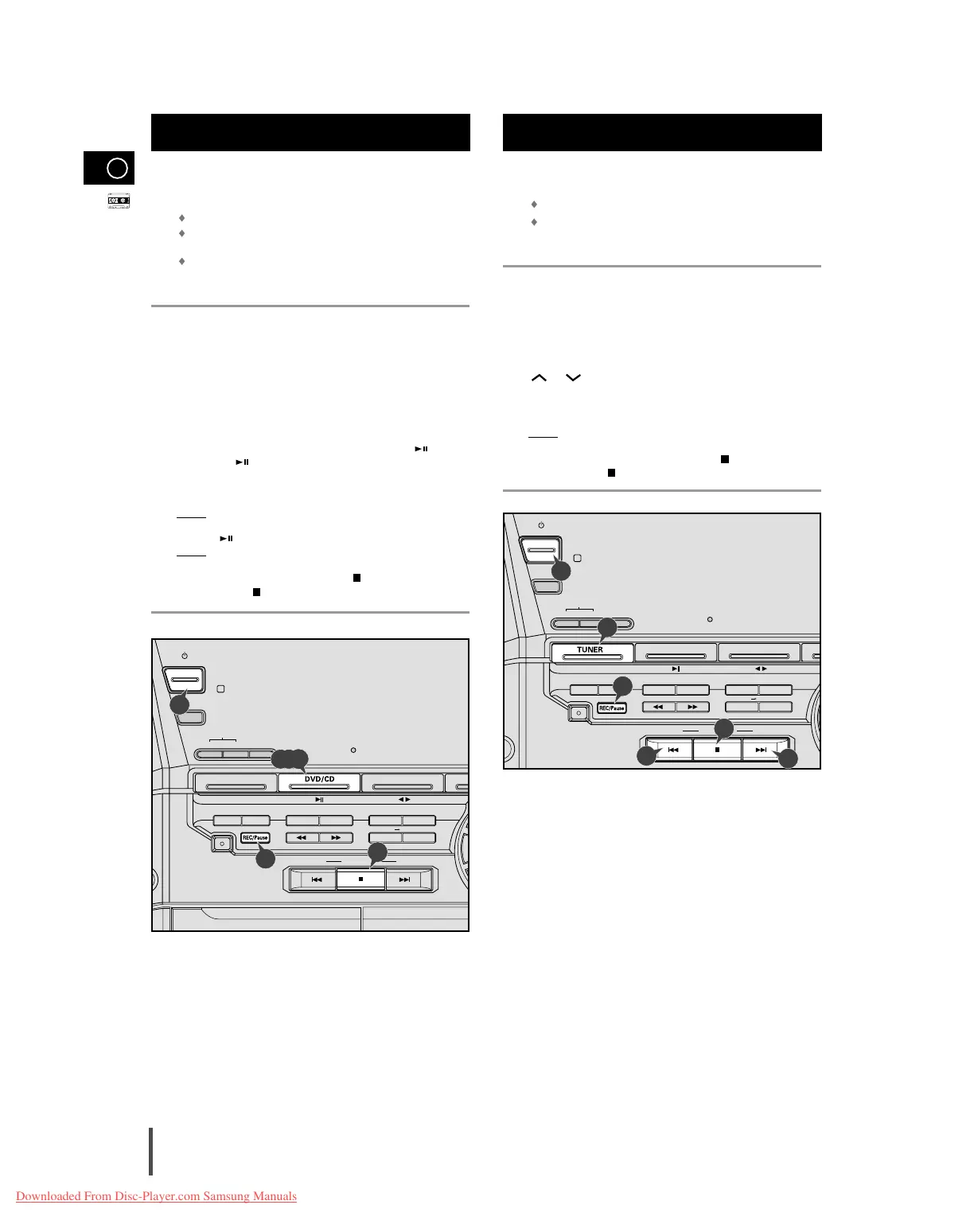 The CD must be in stop mode. When Record button is pressed