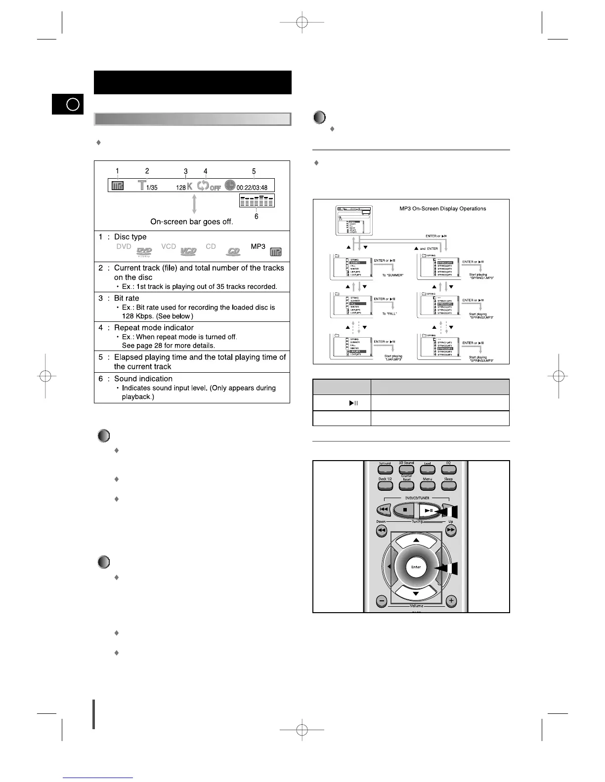 When the loaded MP3 disc is recognized, the following on-screen dis-