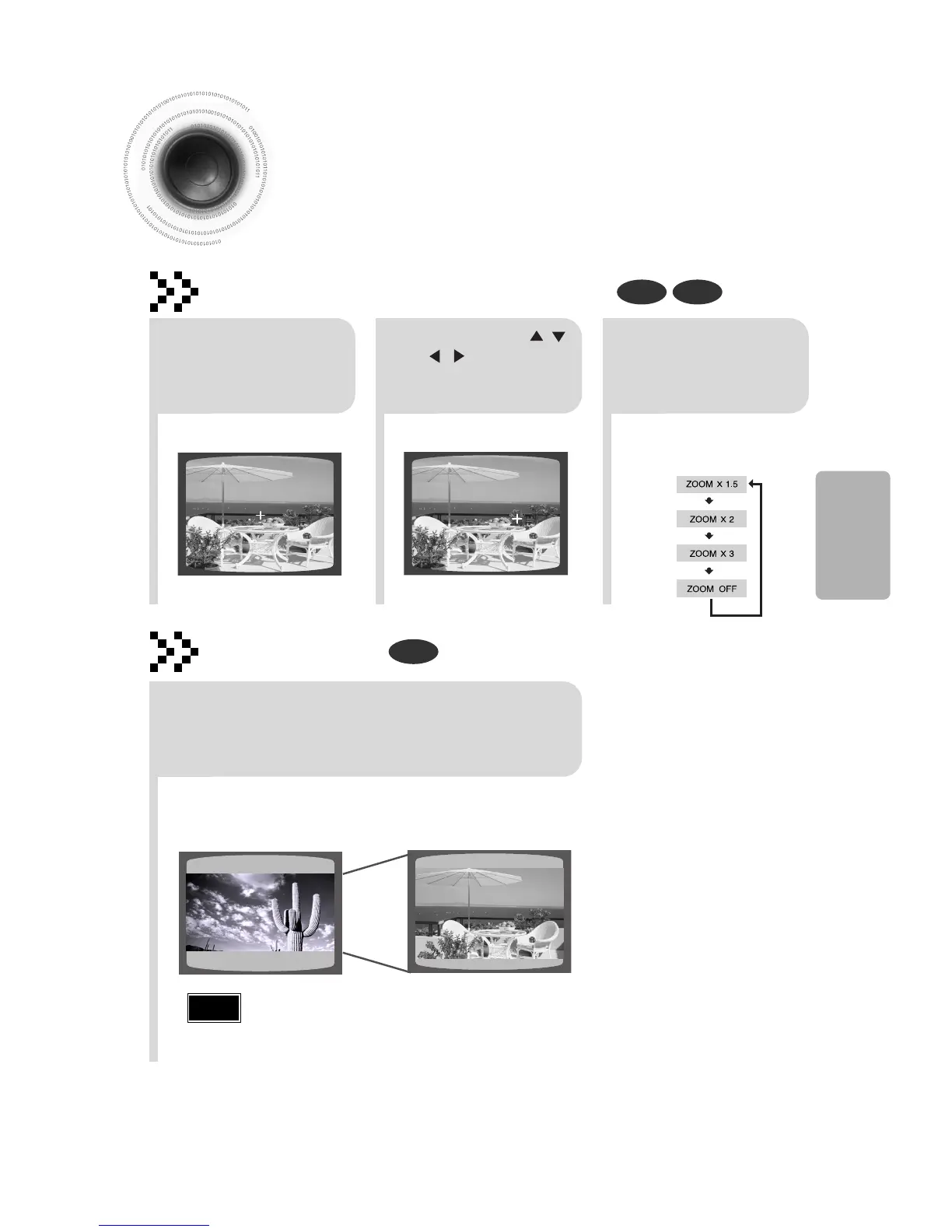 This function allows you to enlarge a particular area of the displayed image.