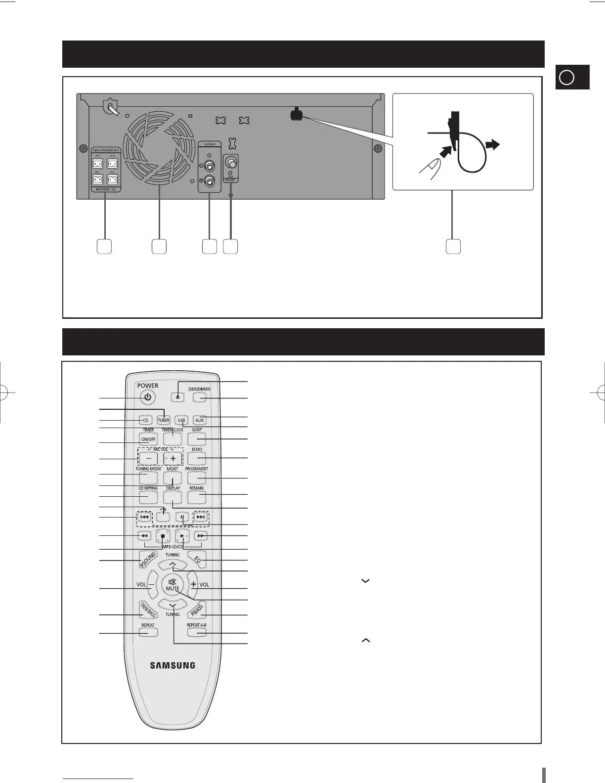 Samsung MAX-G85 - Rear Panel View; Remote Control