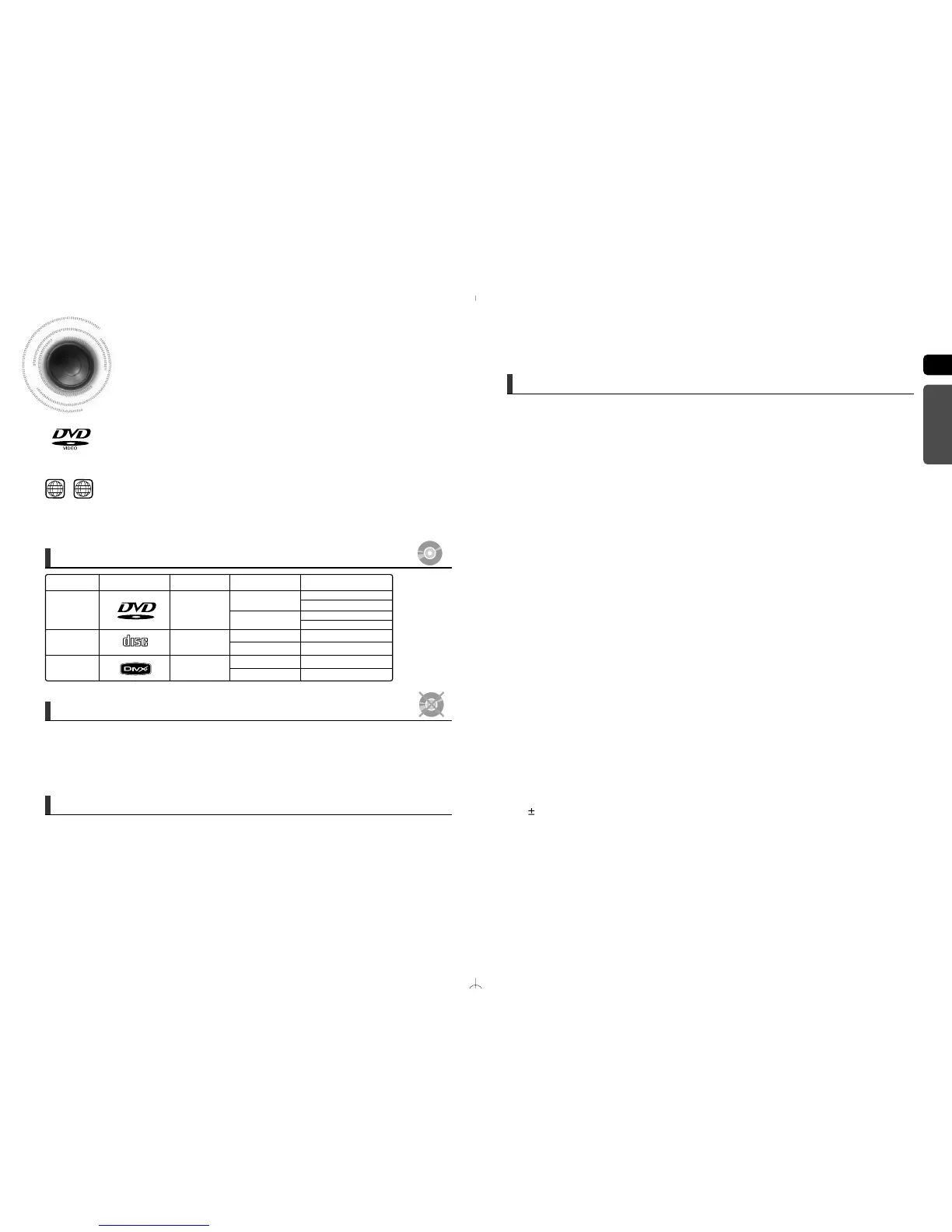 LD, CD-G, CD-I, CD-ROM and DVD-ROM discs cannot be played on this player.