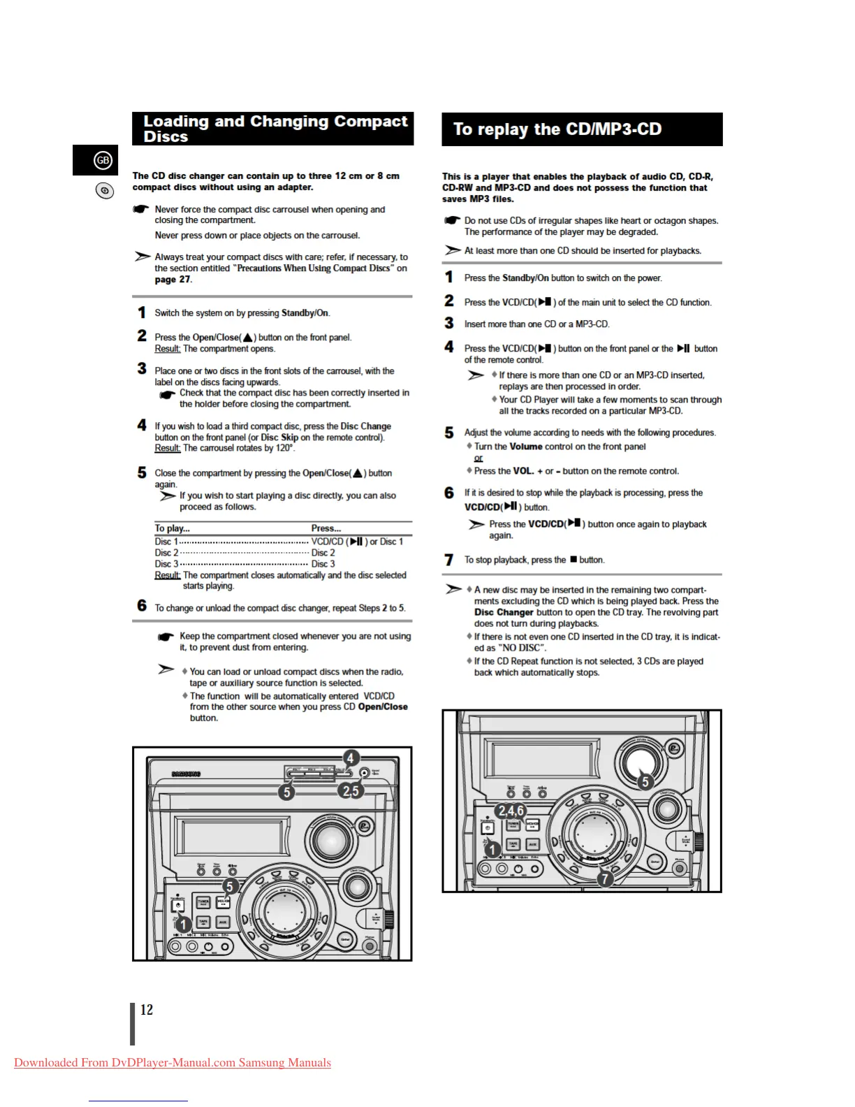 Samsung MAX-VB550 - Loading and Changing Compact Discs; To replay the CD;MP3-CD