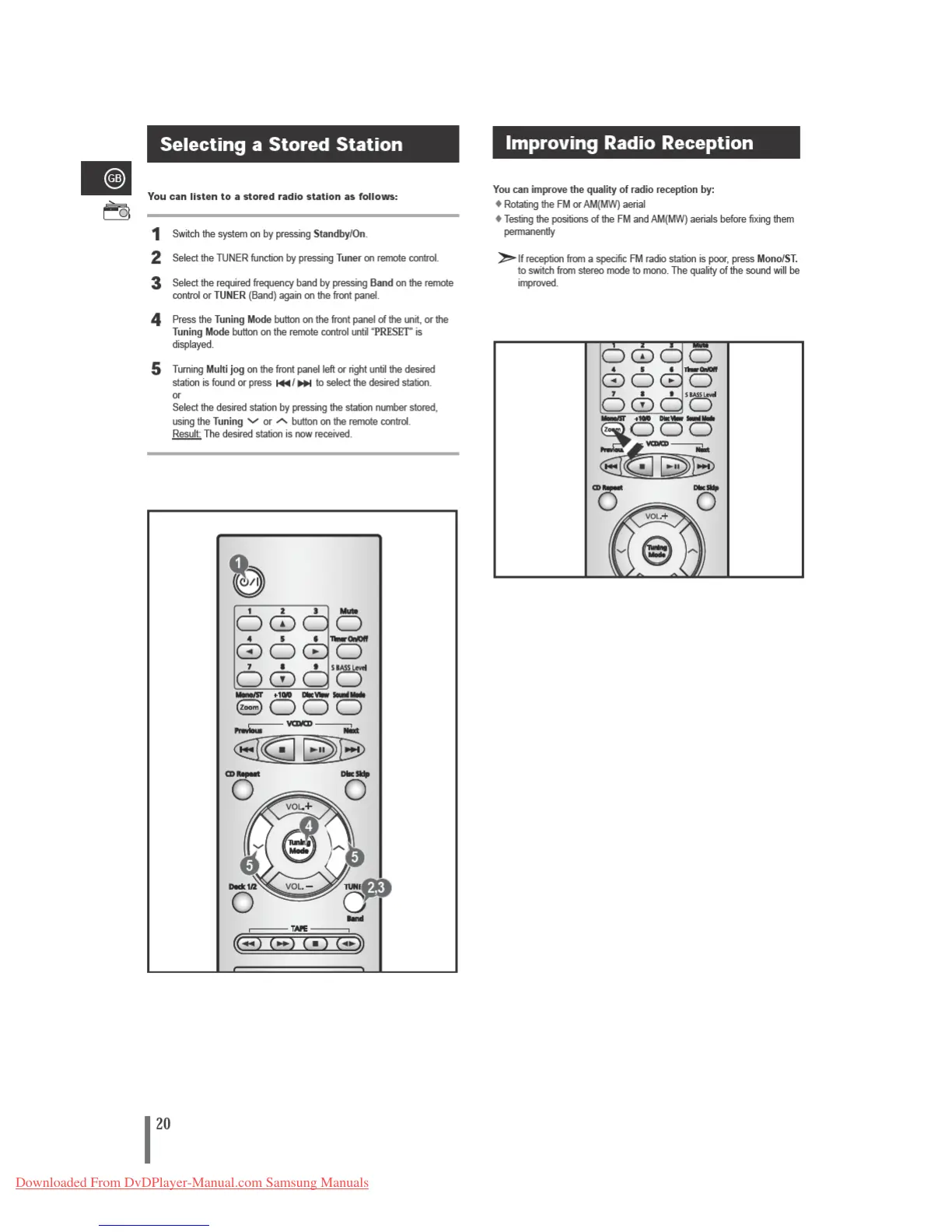 Samsung MAX-VB550 - Selecting a Stored Station; Improving Radio Reception