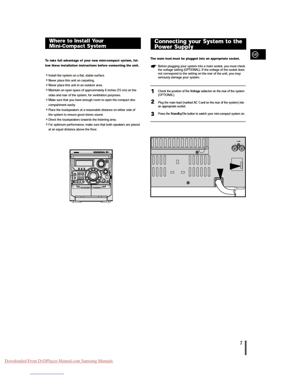 Samsung MAX-VB550 - Connecting your System to the Power Supply