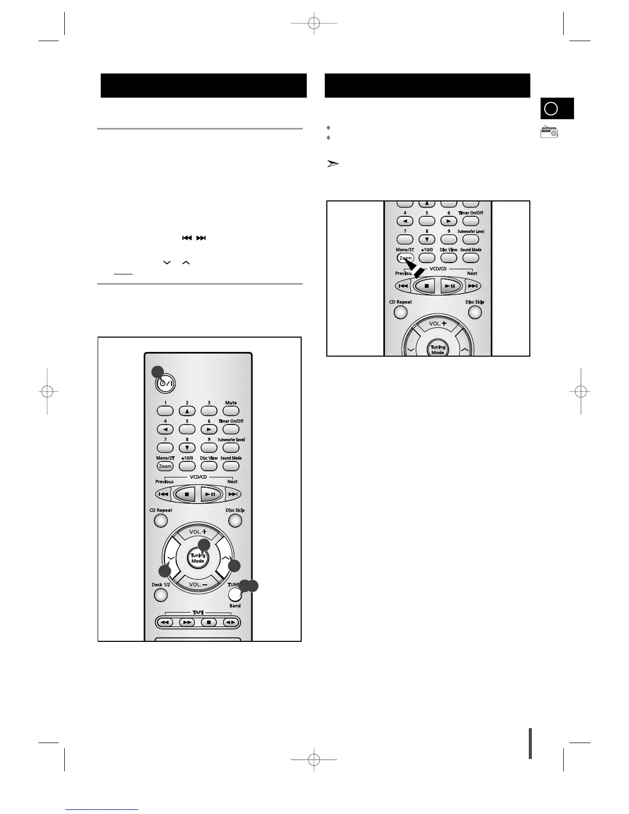 Select the TUNER function by pressing TUNER (Band) on remote control.