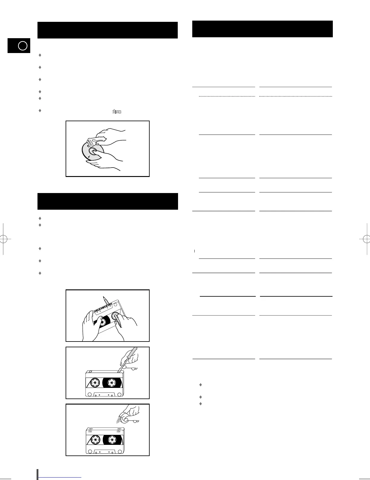 Do not fix paper or adhesive tape to the discs and do not write on