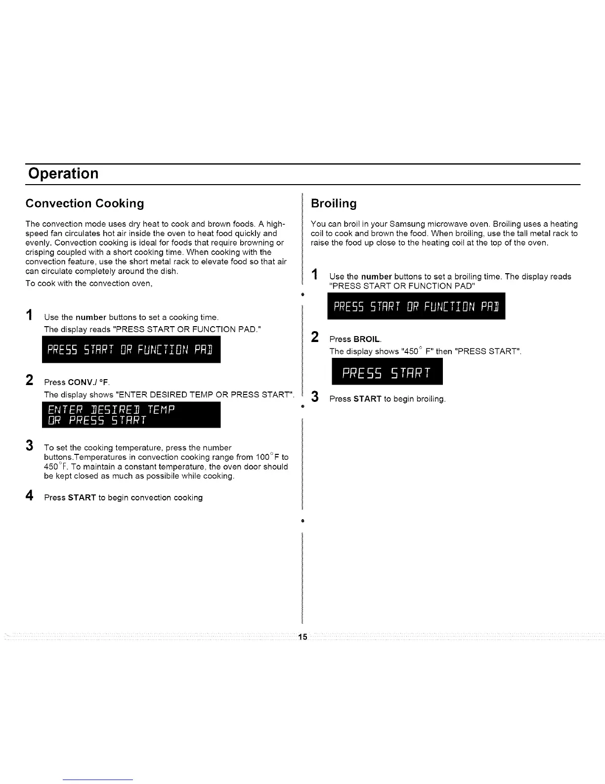 buttons.Temperatures in convection cooking range from 100°F to