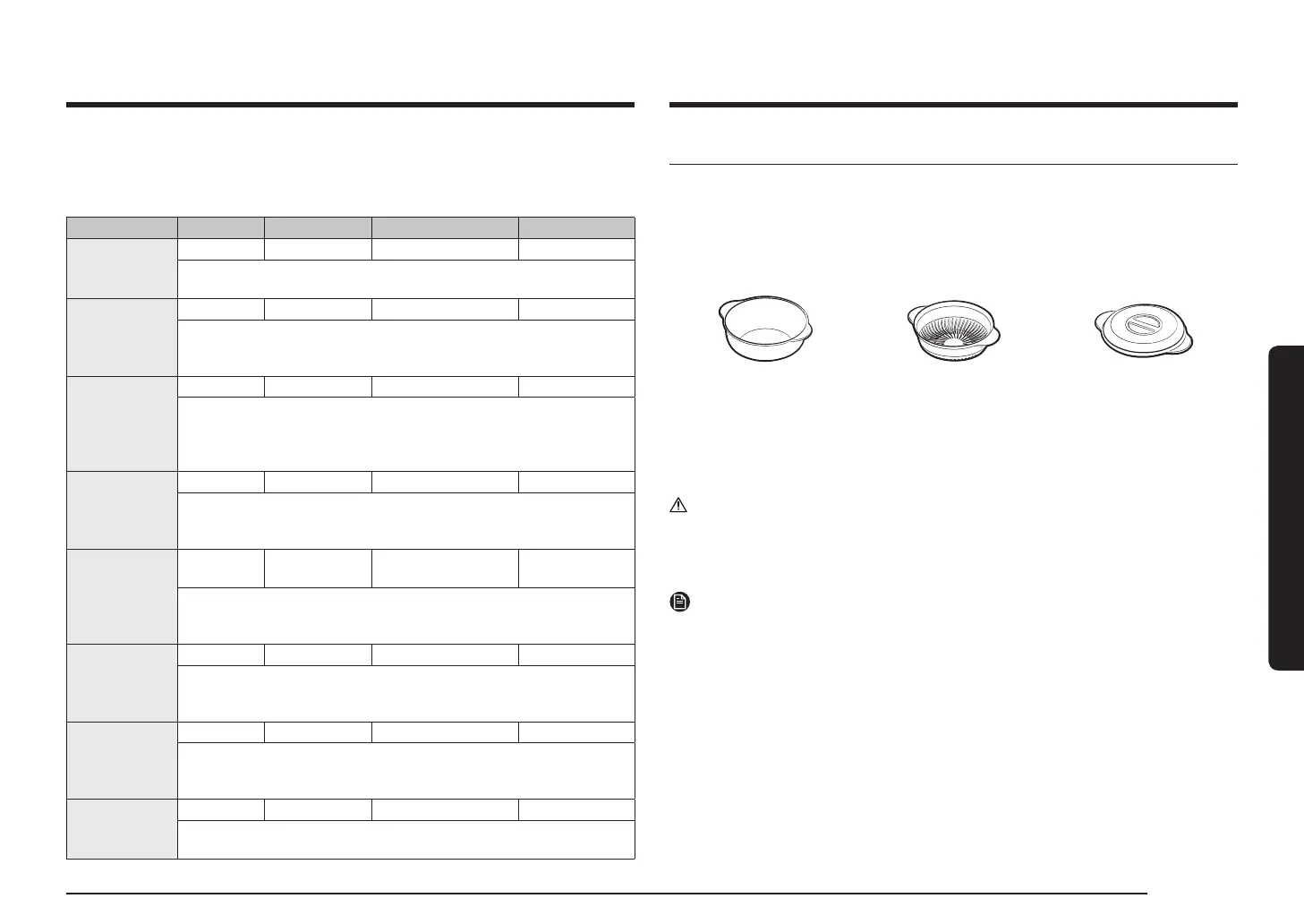 Food Quantity Preheat time(min.) Cooking mode Cooking time (min.)