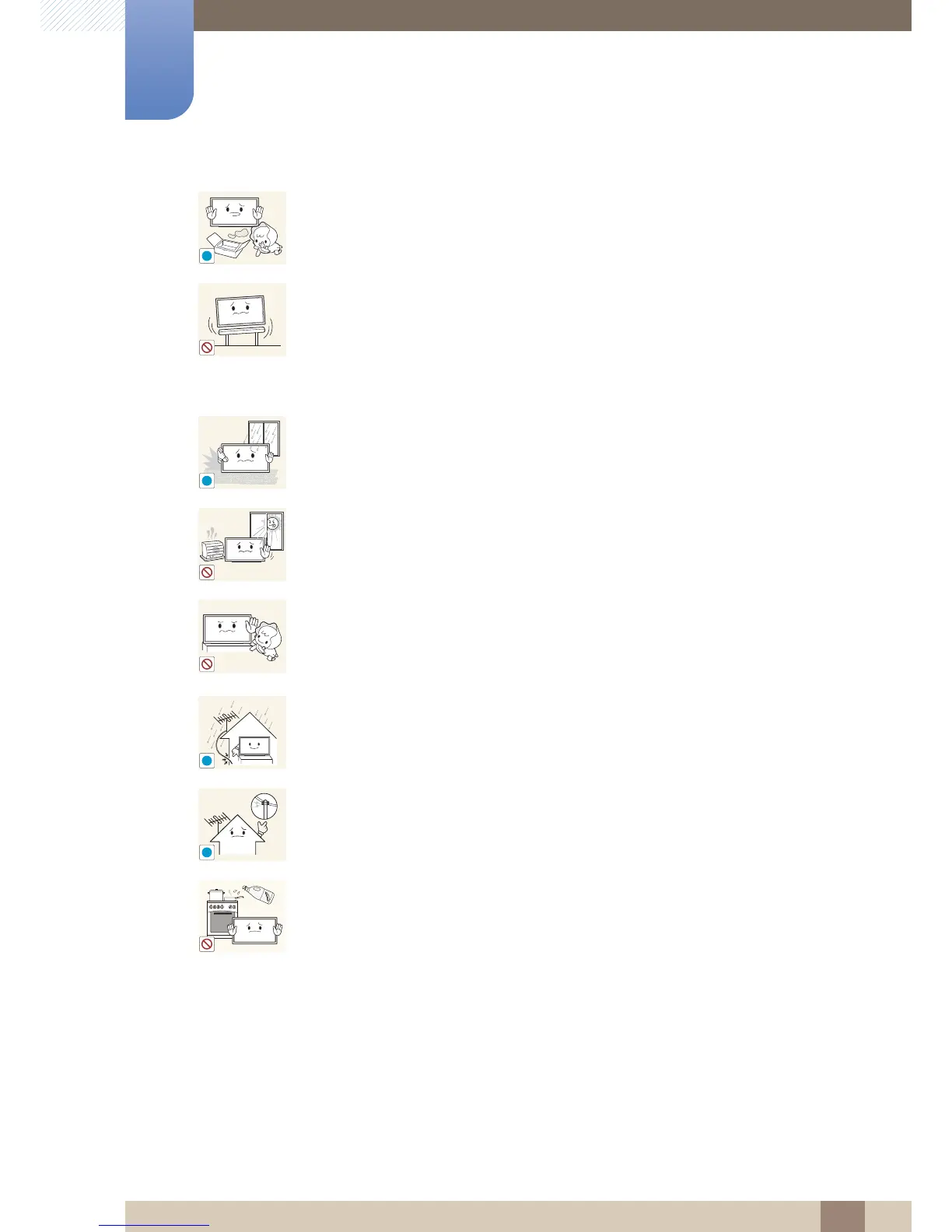 z If rainwater enters the product, a fire or electric shock can occur.