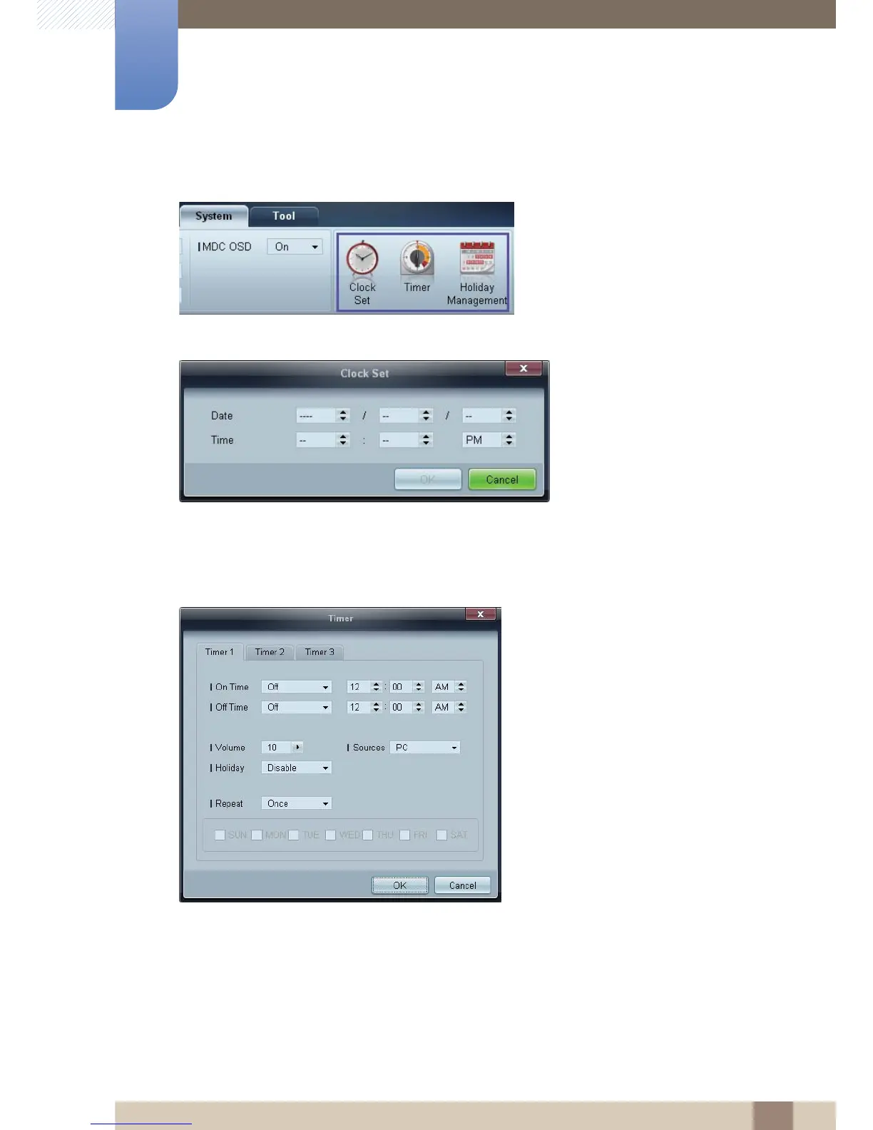 Change the current time on the selected display device according to the time set on a PC.