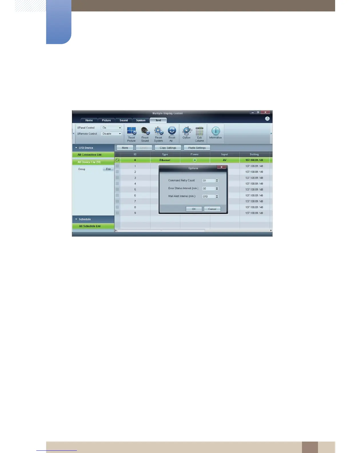 options window. The retry count value must be between 1-10. The default value is 1.