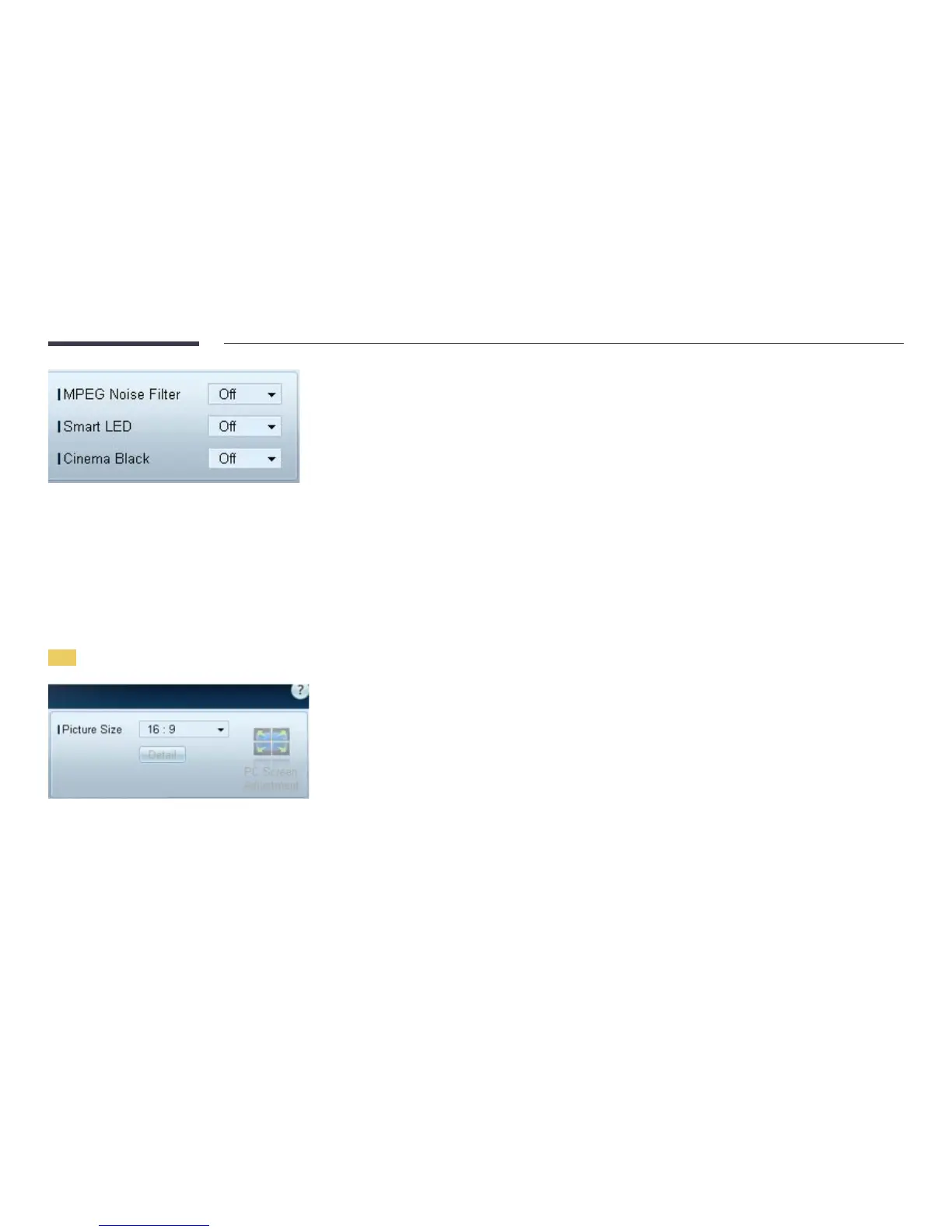 The Detail item will be disabled if Picture Size is set to a mode that does not support detailed configuration.