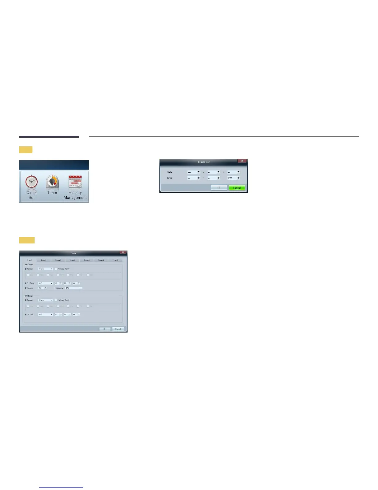 Source: Specify the input source of the display device when it is powered on by On Time.