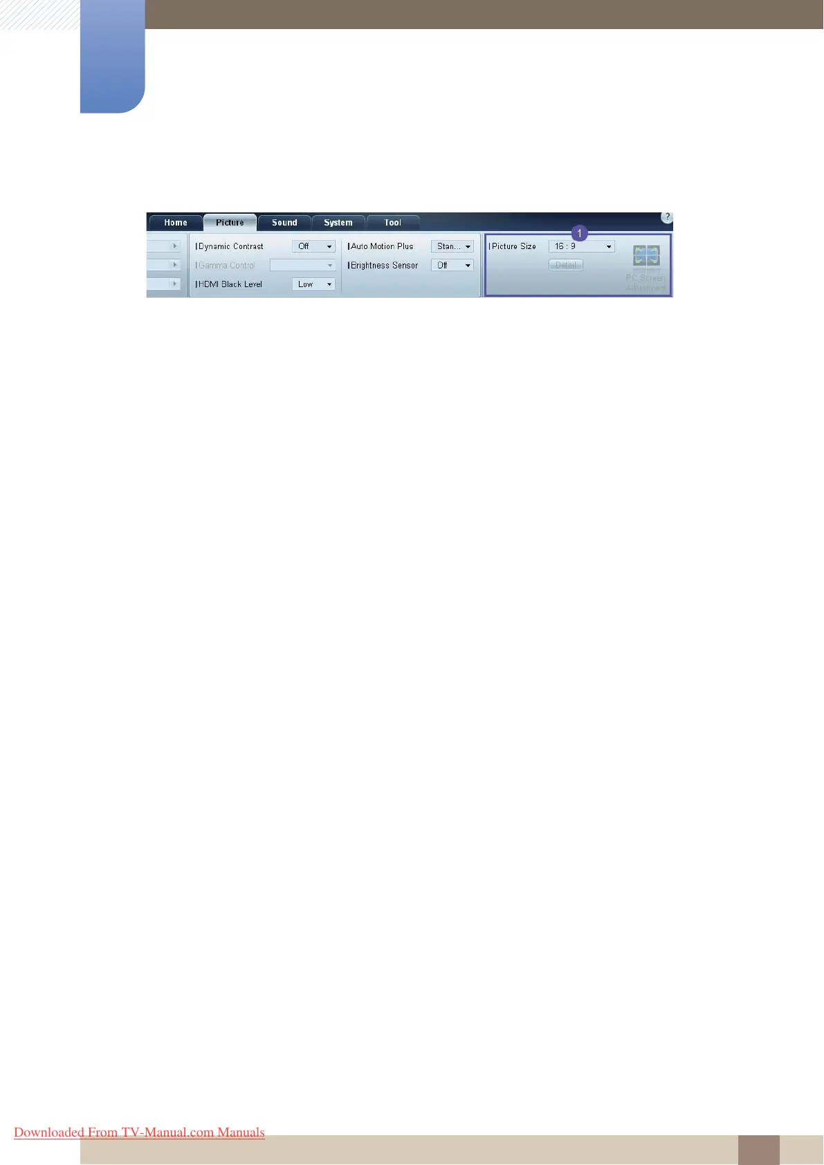 Adjust the screen size for the selected display device.