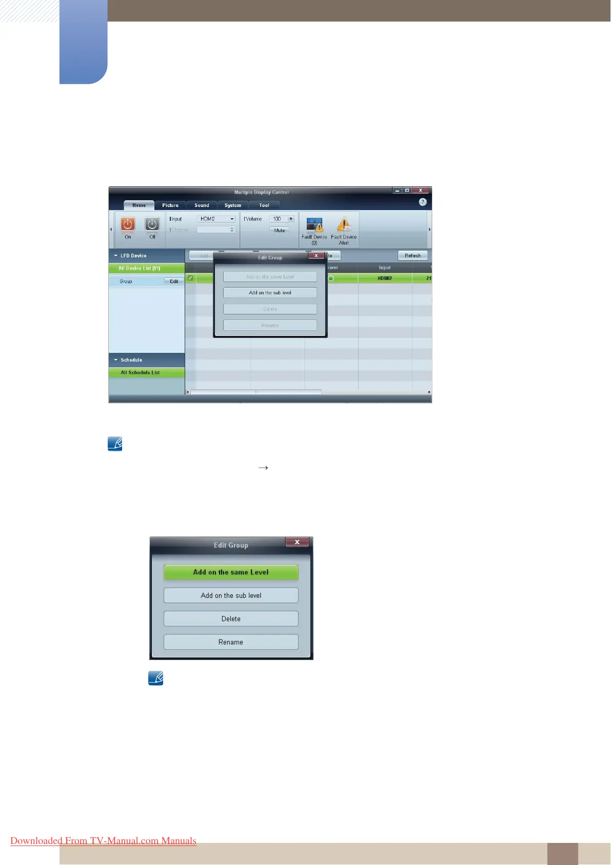 1 Right-click and select Group Edit in the display device list section on the left side of the program