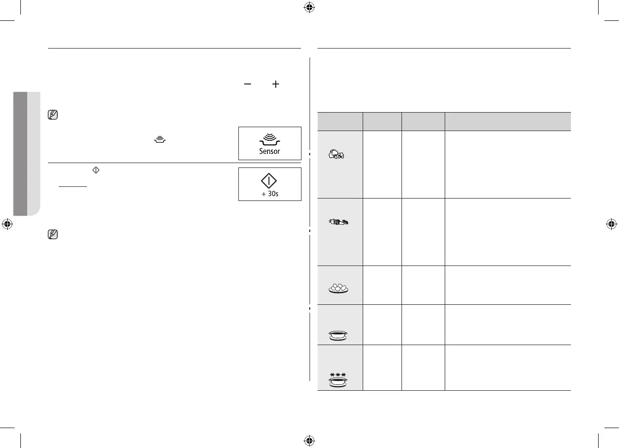 You can adjust the Sensor Cook category by pressing the ( ) and ( )