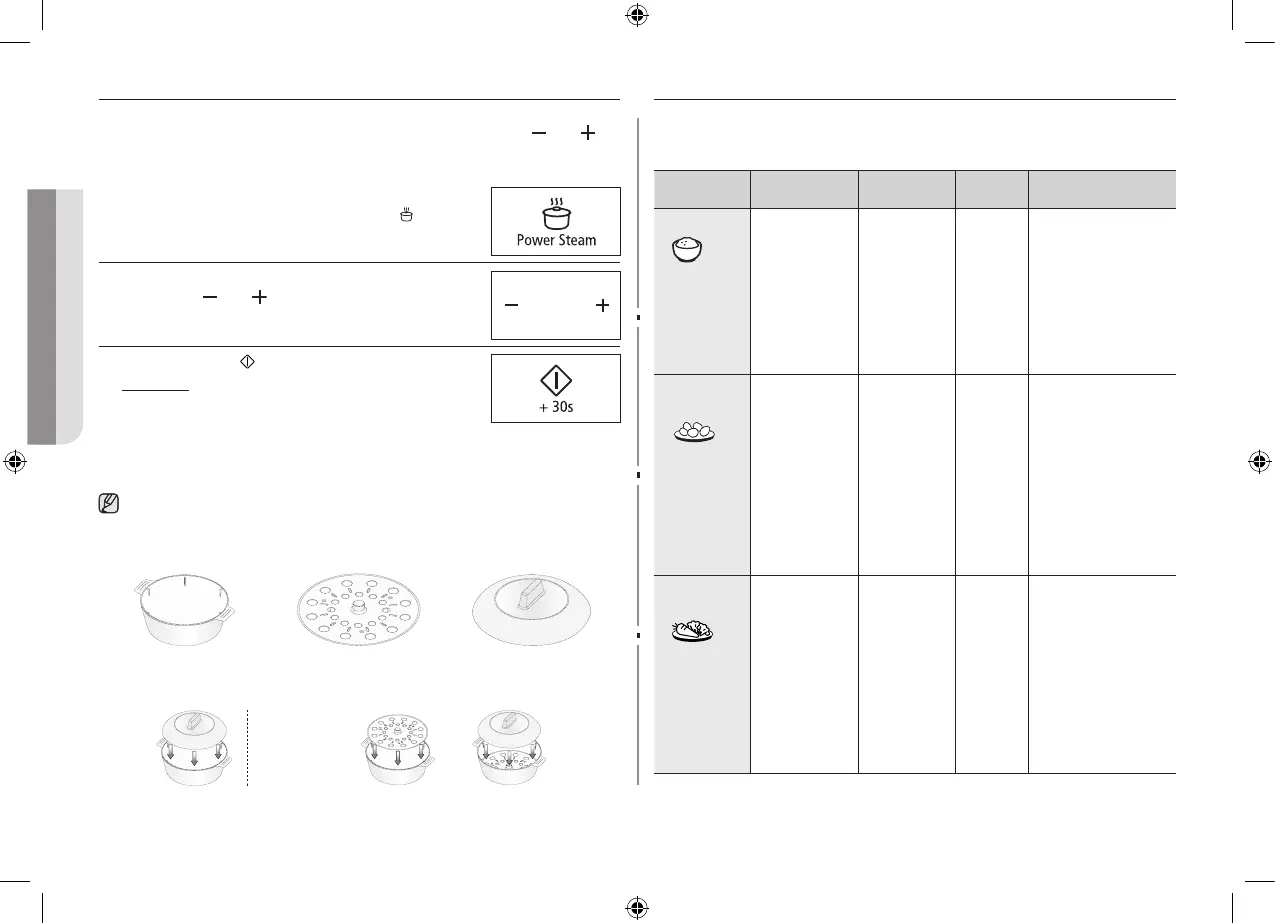 Ved brug af dampfunktionen indstilles tilberedningstiden automatisk.